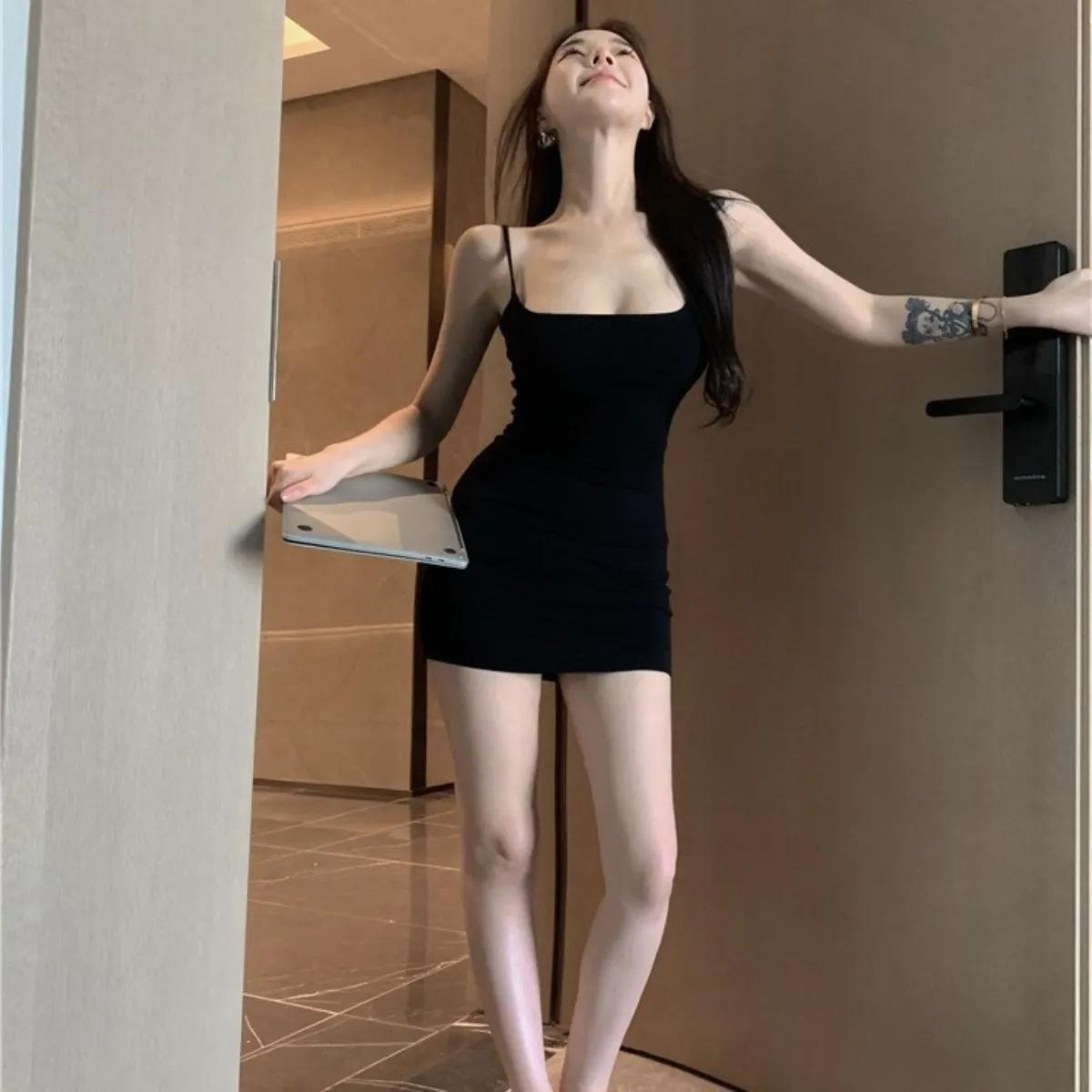 Blue sexy sling dress women's summer 2023 new hot girl sleeveless tight backless sheath short skirt
