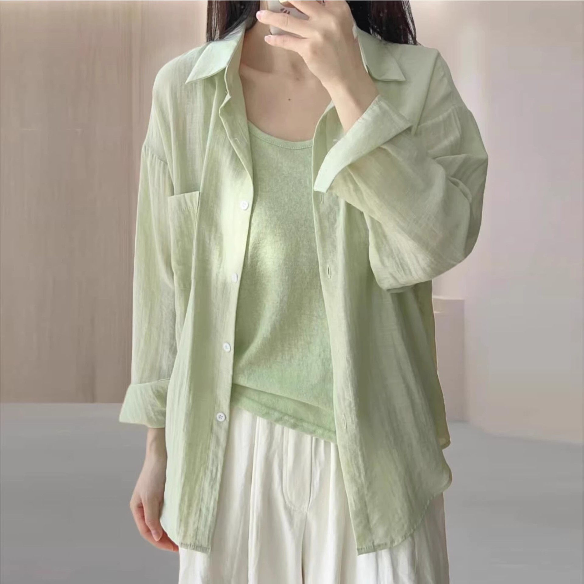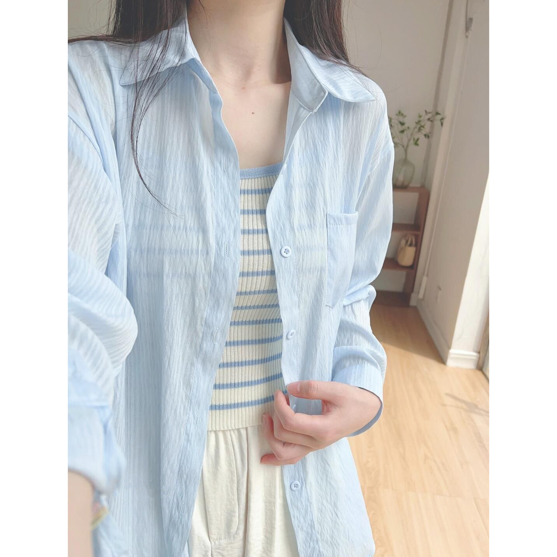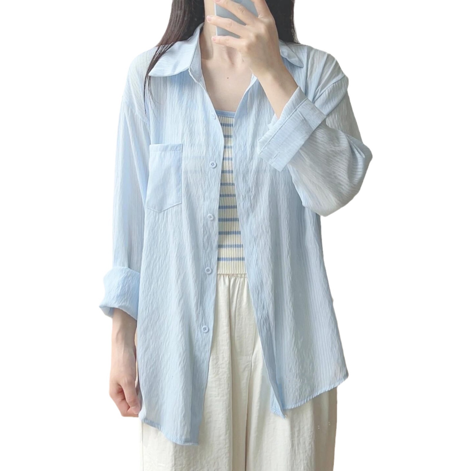 | nameOriginal | Blue Shirt Top Women's 2024 Summer New Mid-length Thin Comfortable Casual All-match Sun Protection Cardigan Jacket |