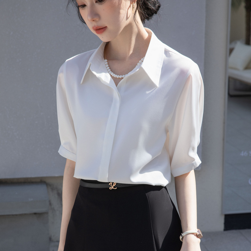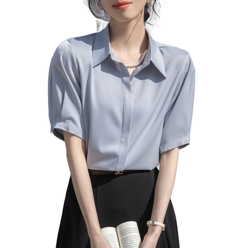 | nameOriginal | Blue Shirt Women's Short-sleeved Summer Thin Professional Elegant Design Sense Niche Mid-sleeved Wrinkle Non-ironing Shirt Top |