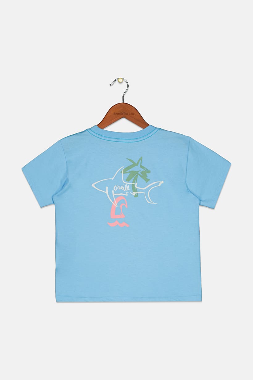 This product is suitable for girls and can be easily cared for by machine washing. It features a crew neckline and short sleeves with a straight hem. The fabric is made of 100% cotton and has a brand logo pattern and print. The product is ideal for casual occasions and has a pullover closure. Please note that the color of the product may vary slightly due to photographic lighting sources or monitor settings. The color family of this product is blue.