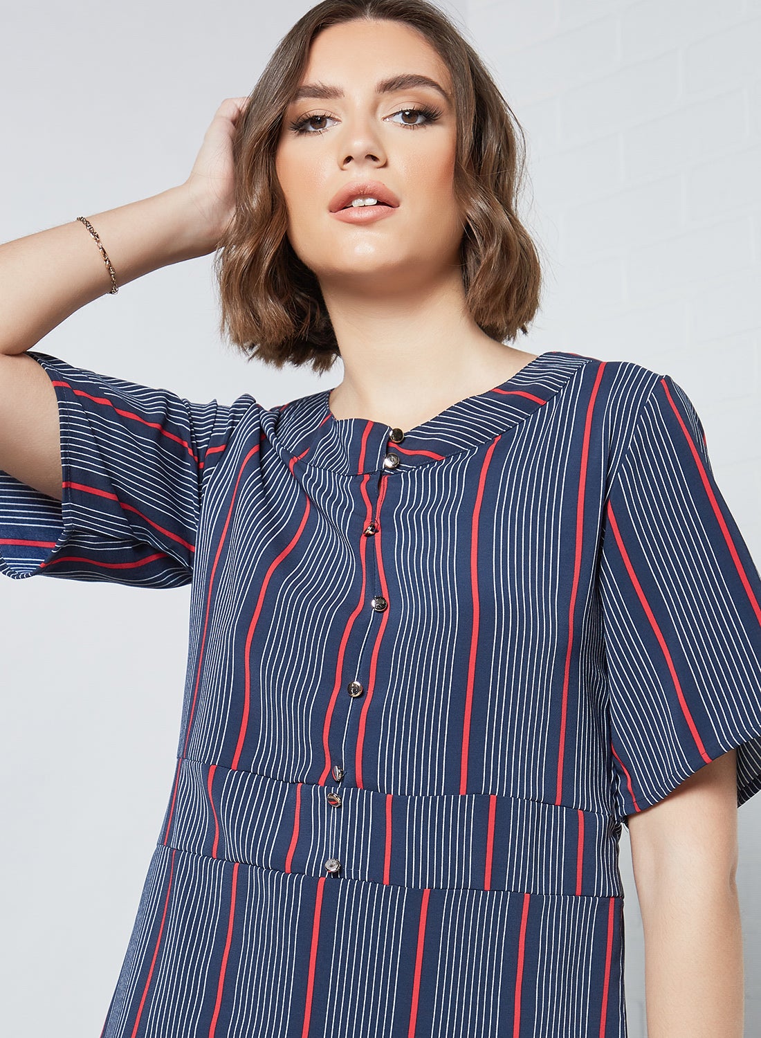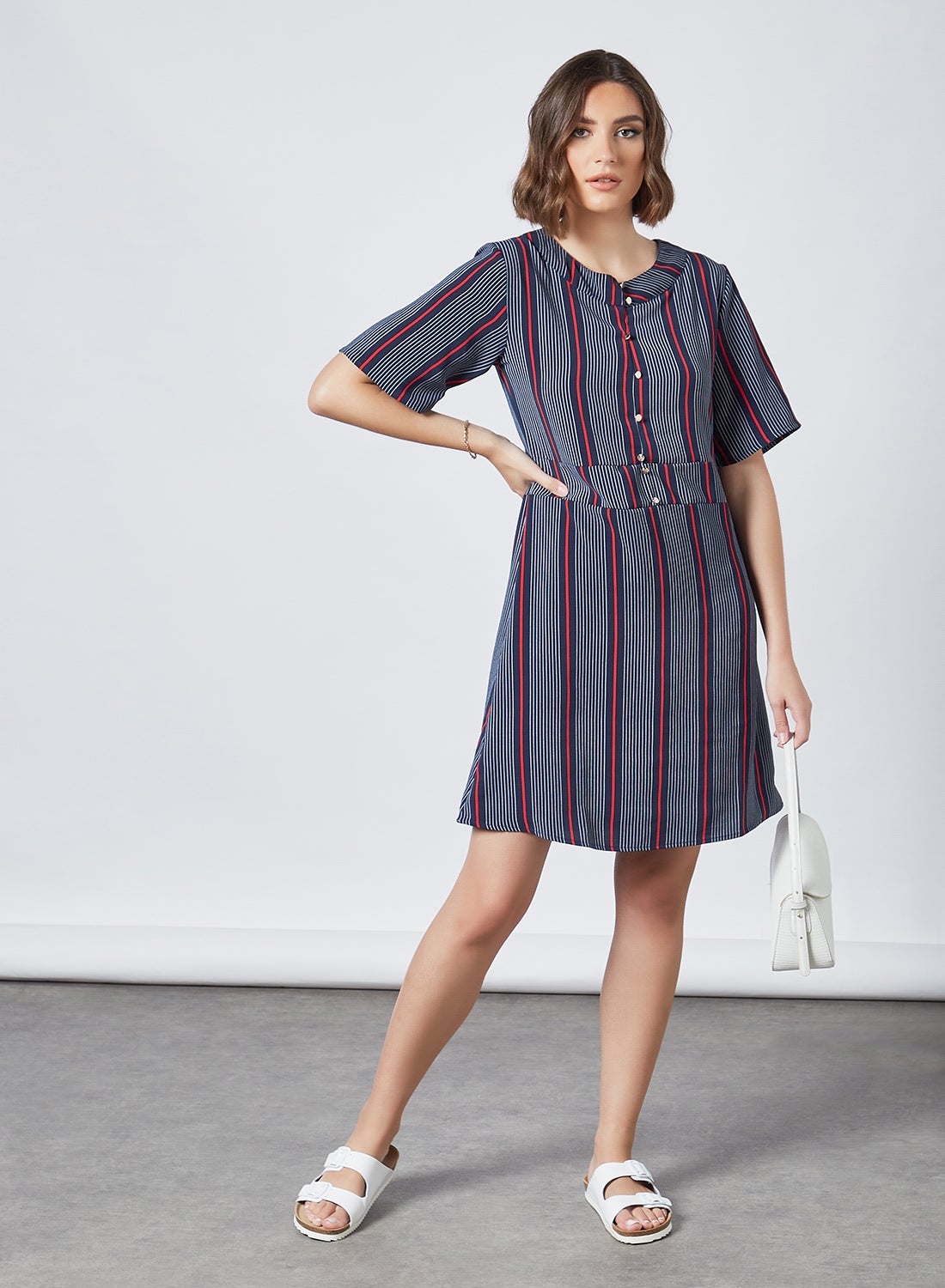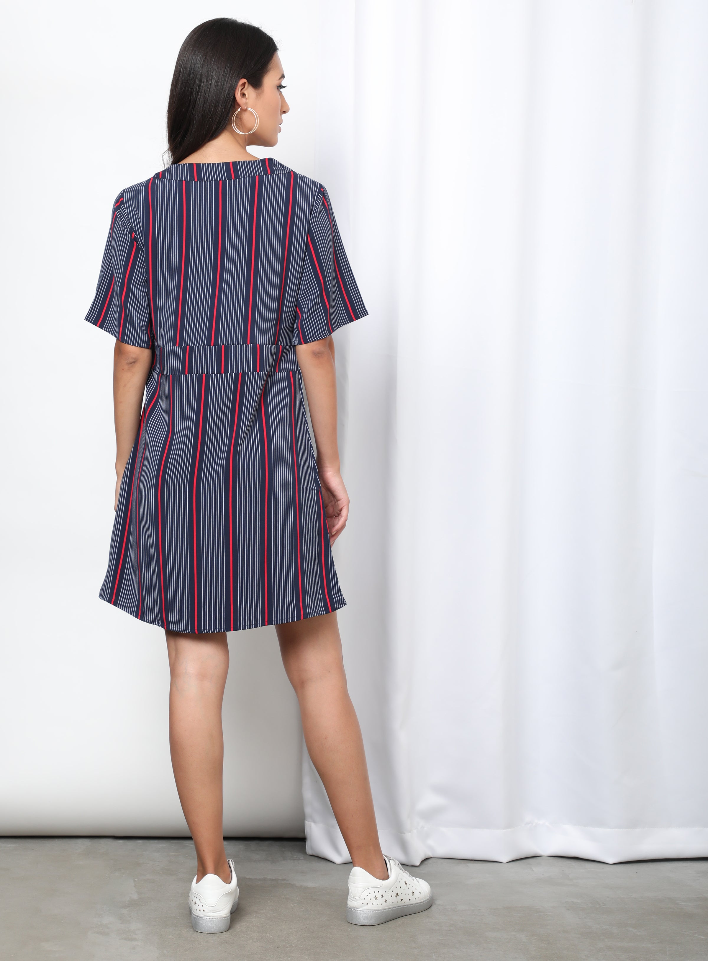 | nameOriginal | Striped Pattern Short Sleeves Dress Blue |