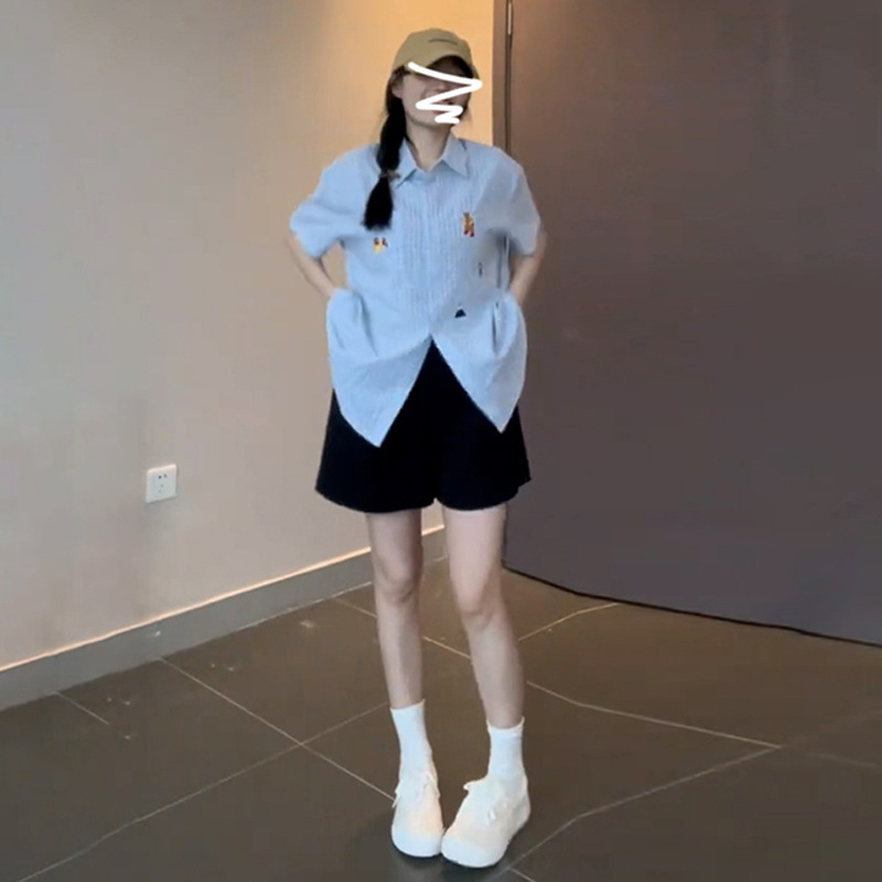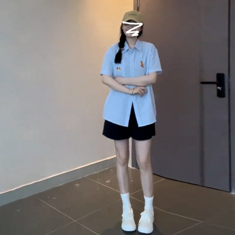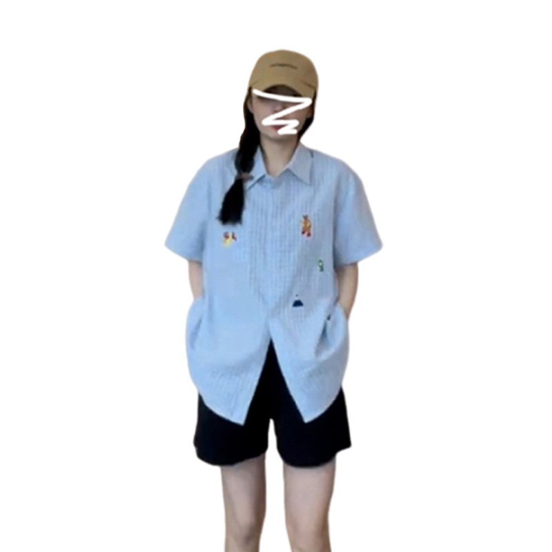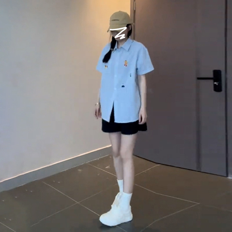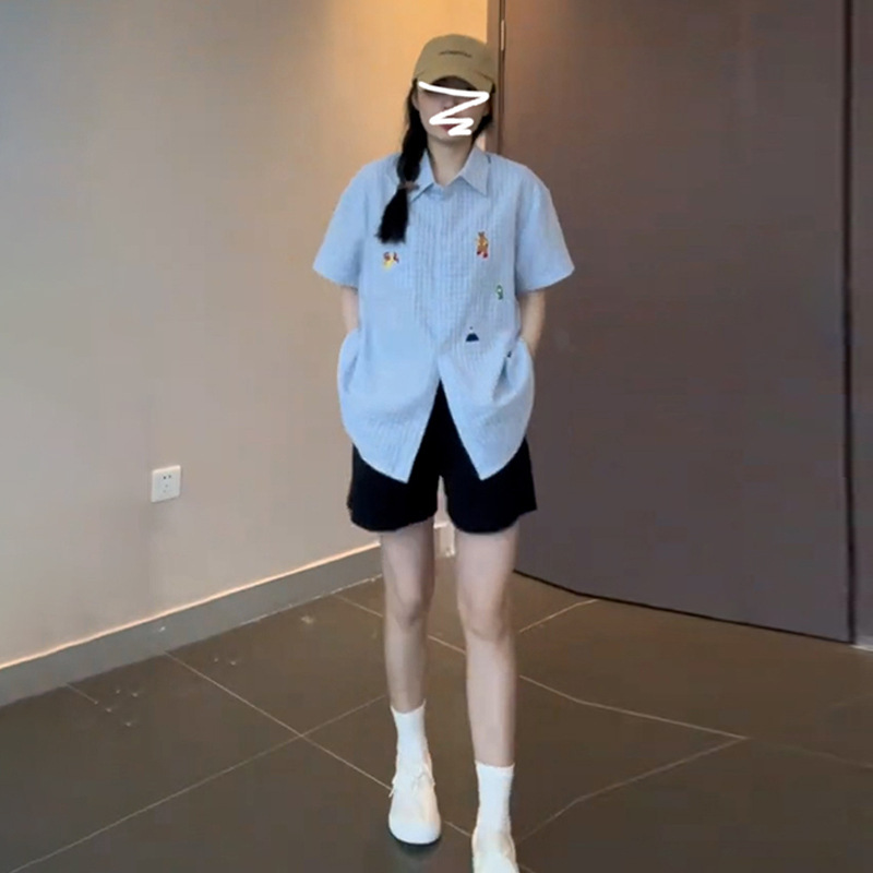 | nameOriginal | Blue Short-sleeved Shirt Women's Summer 2024 New Style Shirt Design Niche Retro Elegant French Style Unique Top |