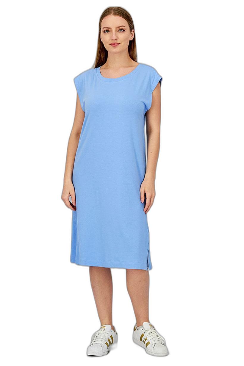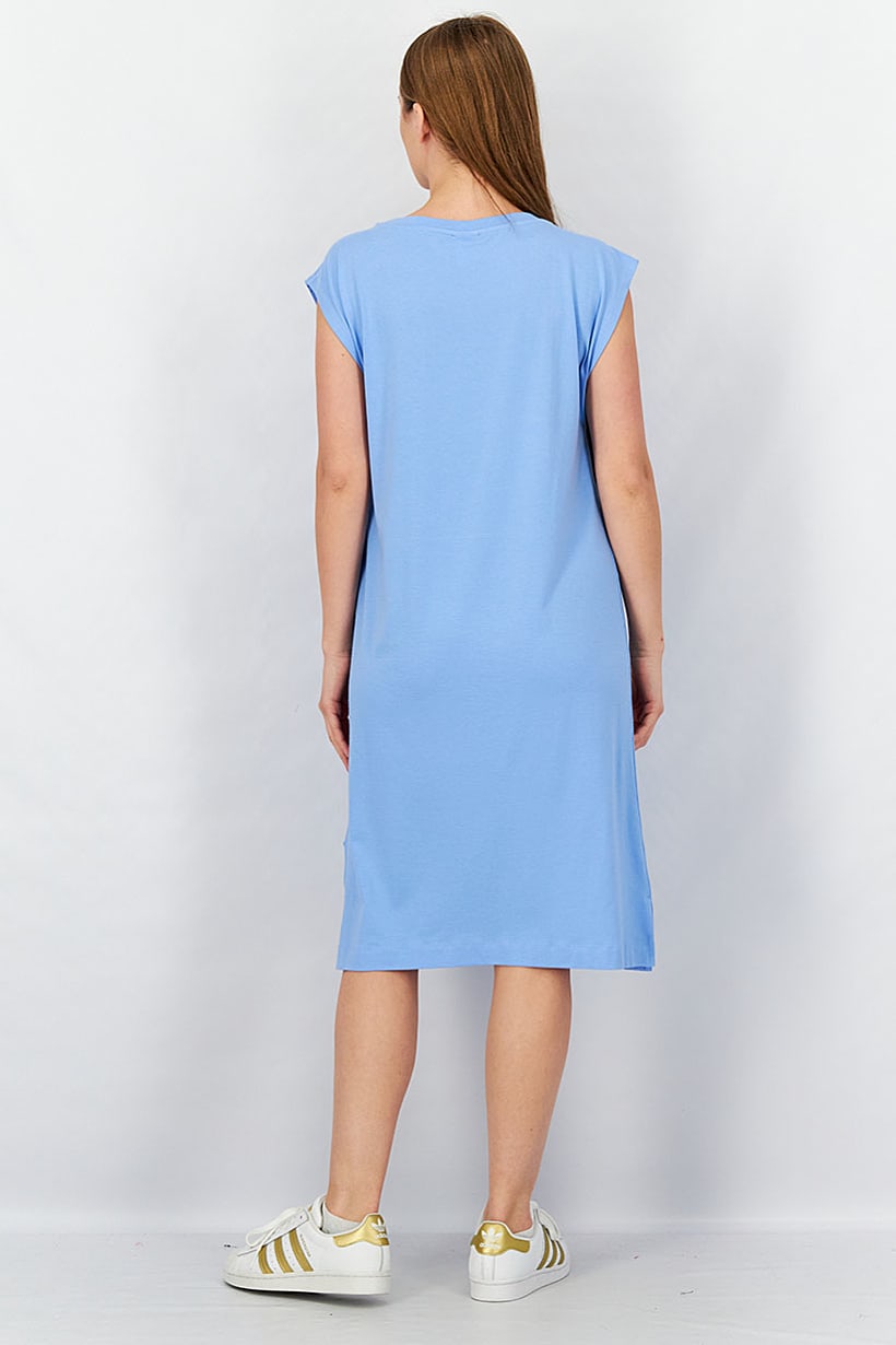 | nameOriginal | Women Crew Neck Sleeveless Solid Long Top, Blue |