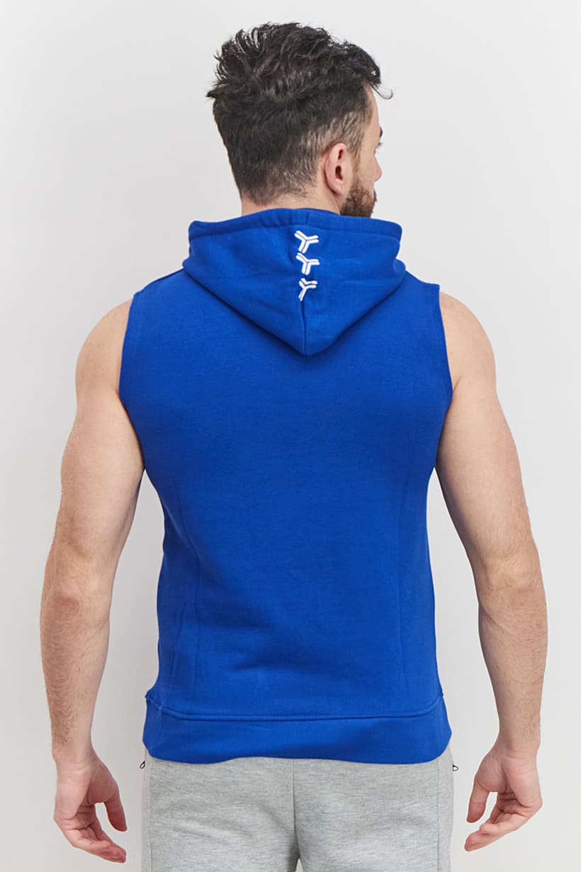 Men Hooded With Drawstring Brand Logo Sleeveless Sweatshirt, Blue