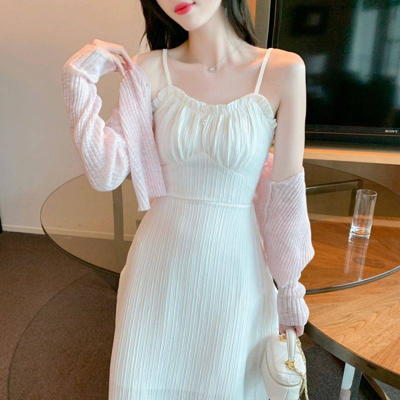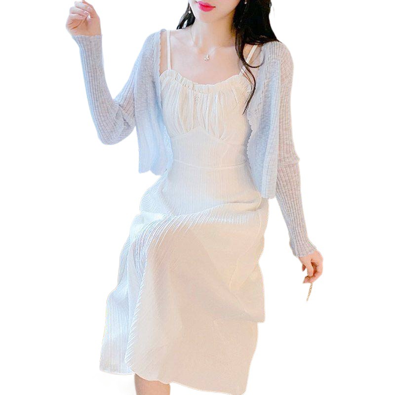 | nameOriginal | Blue Sling dress Women's Summer High-end Design Sense Niche Tight Waist Slimming Gentle Wind Long Skirt Two-piece Set |