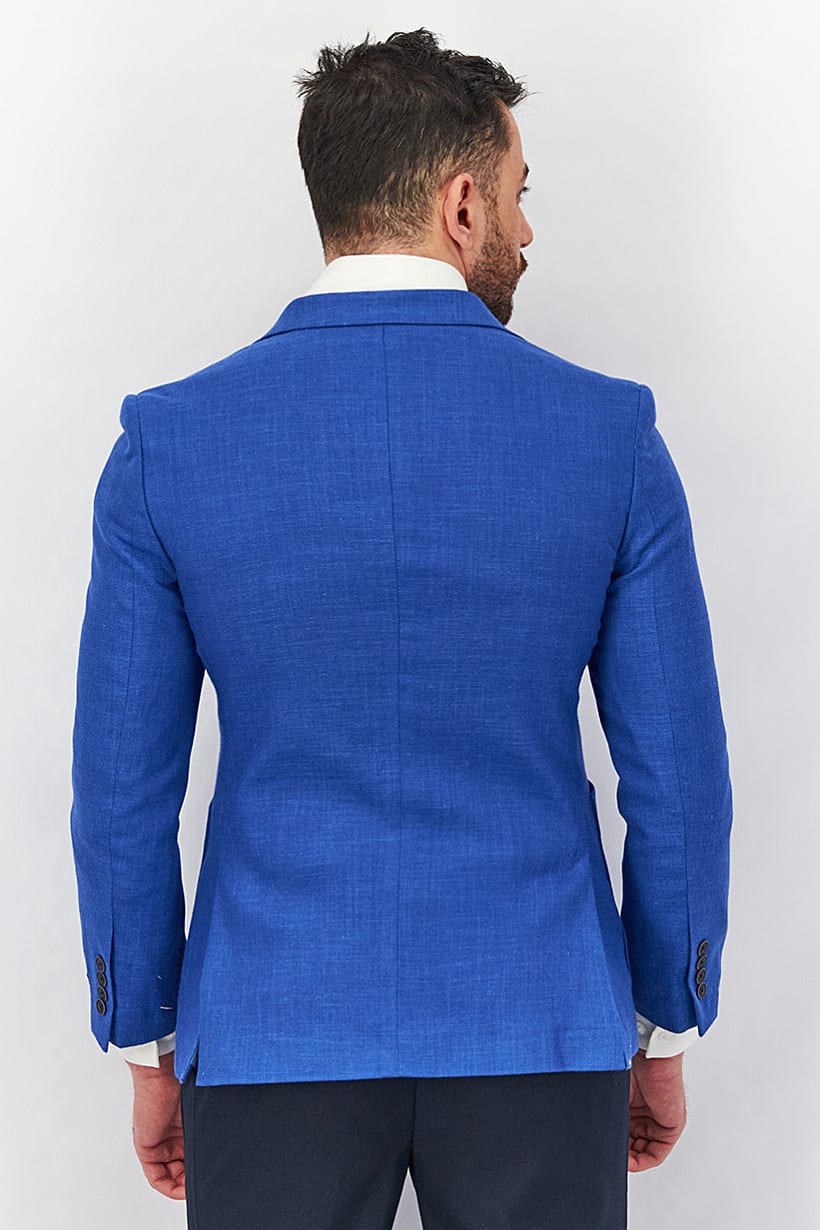 Care : Machine washable, Fit : Modern fit, Size shown : Inches, Suit Type : Suit Jackets, Type of Neckline & Collar : Notched collar , Fabrics : 72% Polyester, 25% Rayon, 2% Linen, 1% Spandex, Occasion : Semi Formal, Color Family : Blue,