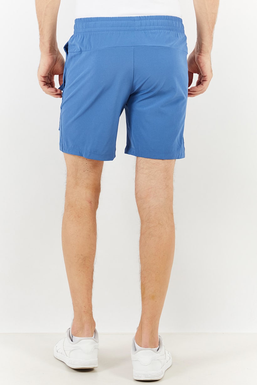 This pair of sportswear shorts features a step hem at the bottom and a drawstring closure. They are made of 100% polyester fabric and are machine washable. The sportswear fit is designed for training and the shorts have a light thickness. The color is blue and the pattern is plain/solid. The size shown is international. These shorts are perfect for any sportswear type.