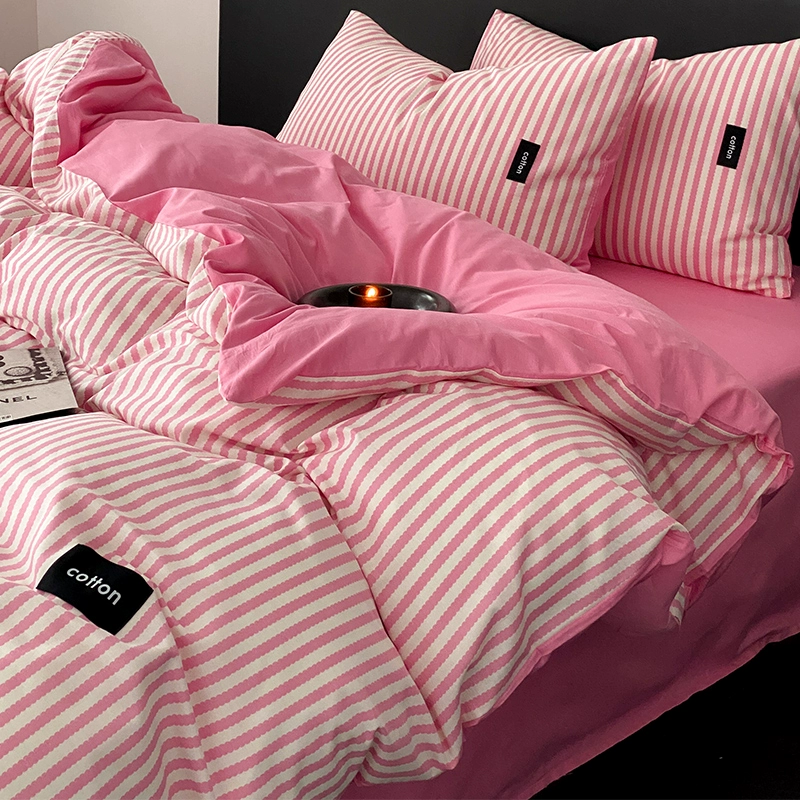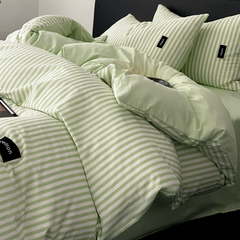 | nameOriginal | Blue striped cotton bed four-piece set 100 pure cotton simple style quilt cover sheets dormitory single three-piece set for men |