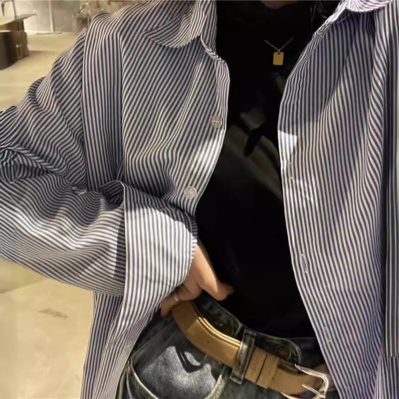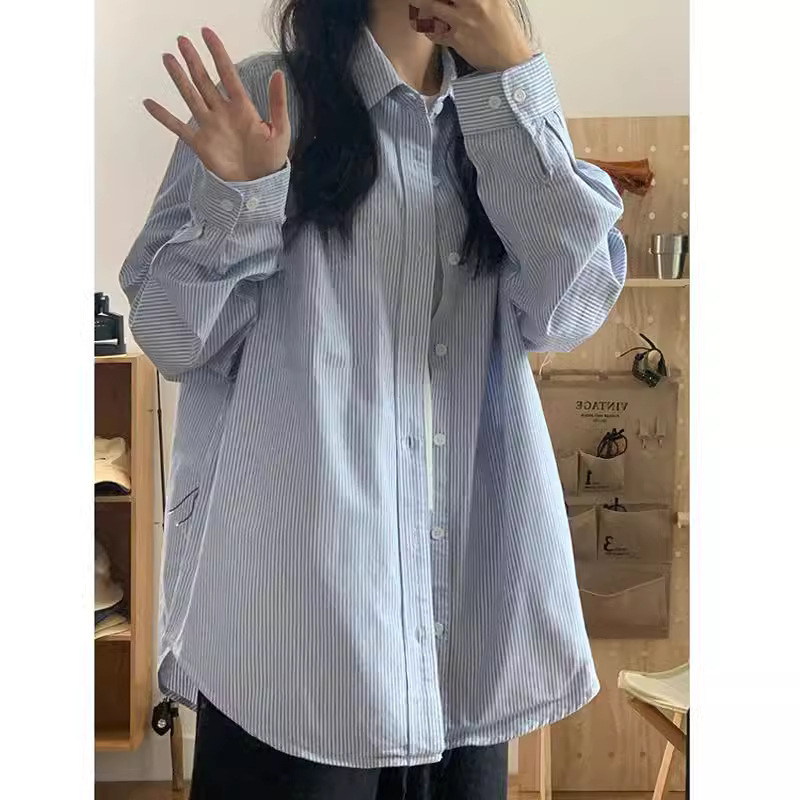 | nameOriginal | Blue striped long-sleeved shirt for women 2024 New plus size chubby girl loose sun protection shirt coat top spring and autumn |