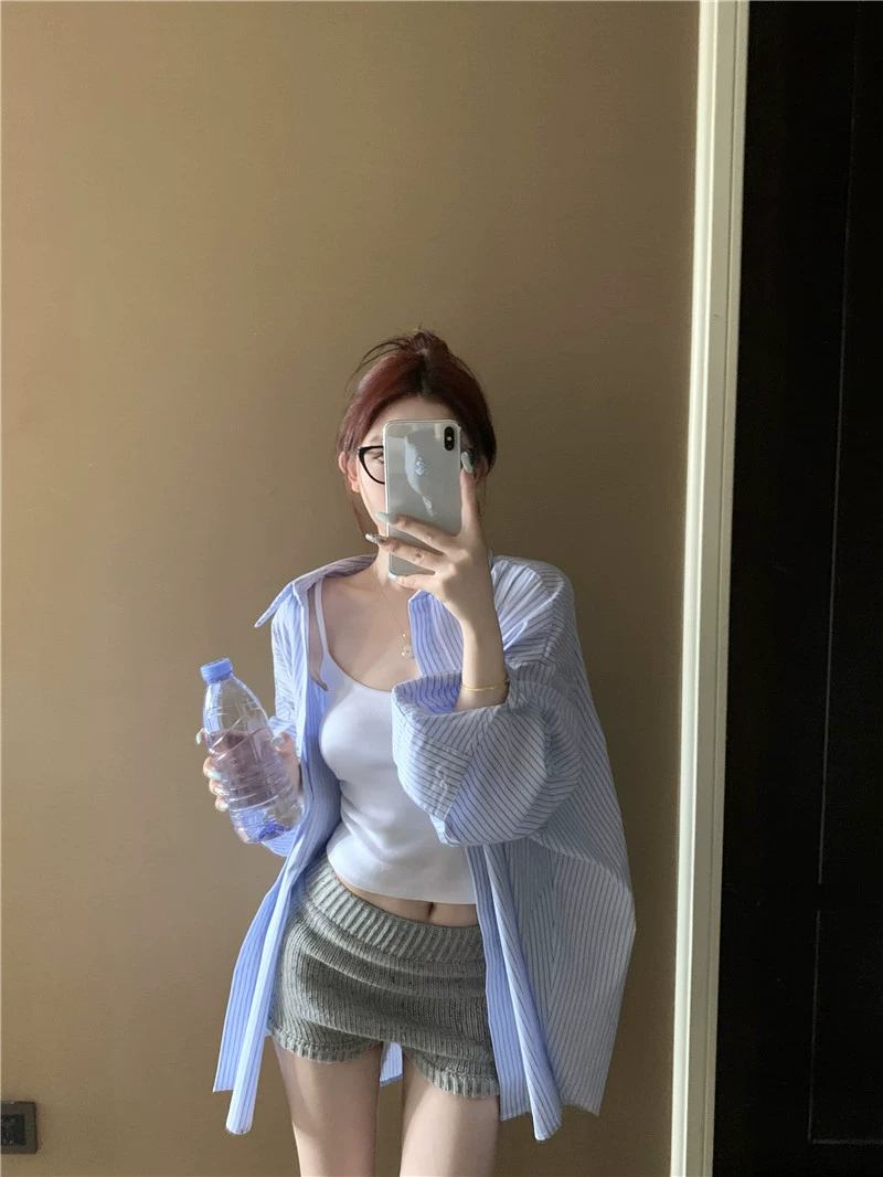 | nameOriginal | Blue striped loose sun protection jacket long-sleeved shirt |