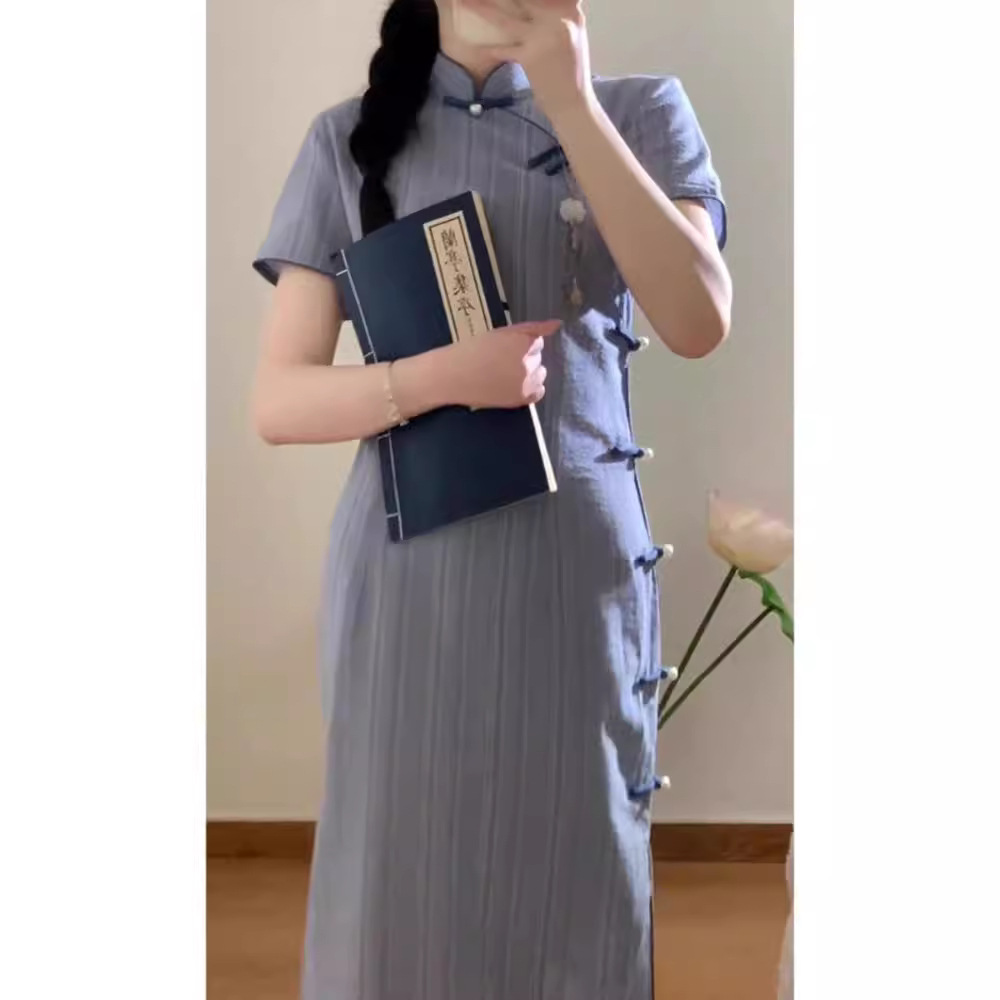 | nameOriginal | Blue Striped New Chinese Style Retro Republic of China Style Cheongsam 2024 New Improved Daily Wear for Young Girls in Summer |
