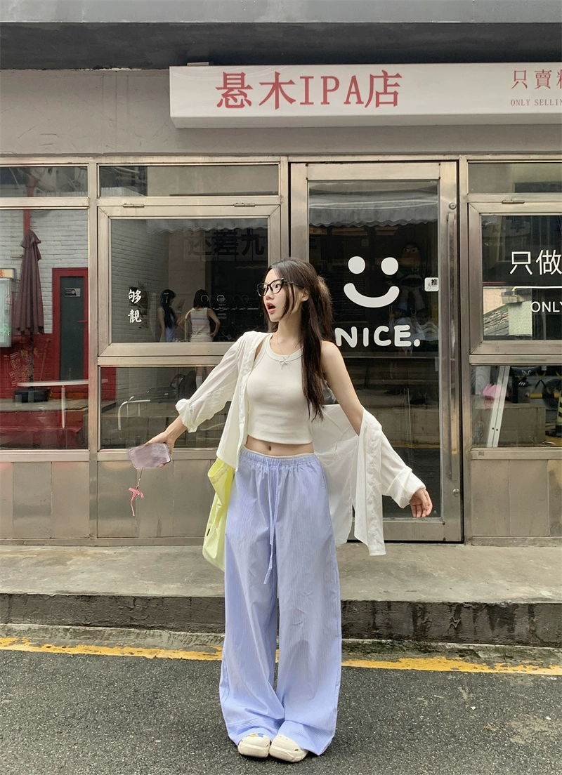 Blue striped Yamamoto loose wide-leg floor-length casual pants