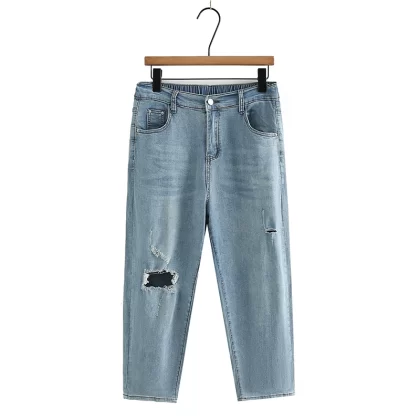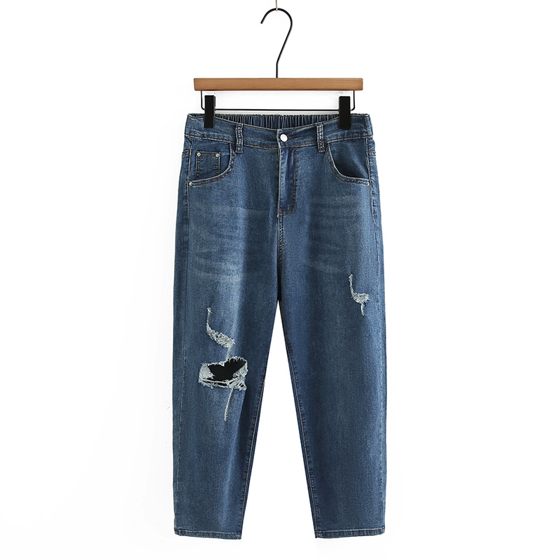| nameOriginal | Blue summer high-waisted eight-point ripped plus size jeans |
