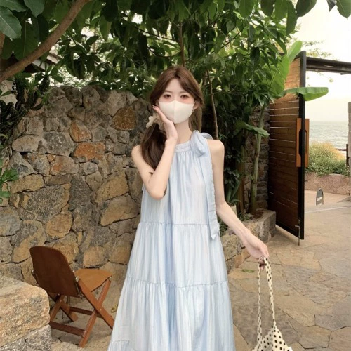 | nameOriginal | Blue summer new style halterneck bow suspender skirt |
