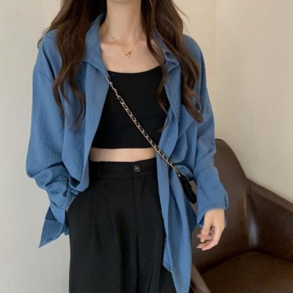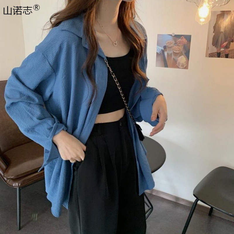 | nameOriginal | Blue Sunscreen Shirt Coat Loose Women's Summer Thin Design Niche Top Shirt Summer 2023 New Hair |