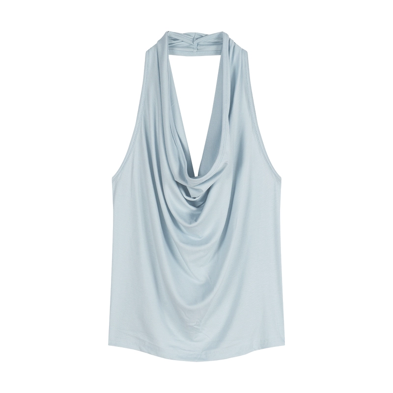 | nameOriginal | Blue swing collar slim fit sleeveless backless halter neck strap |