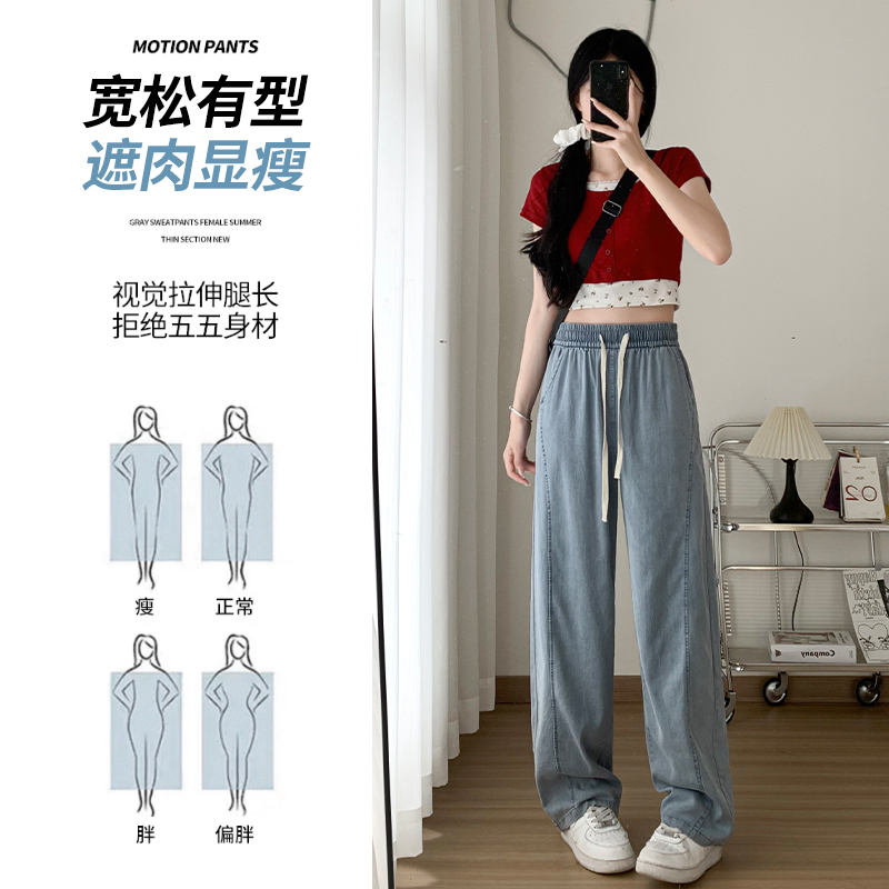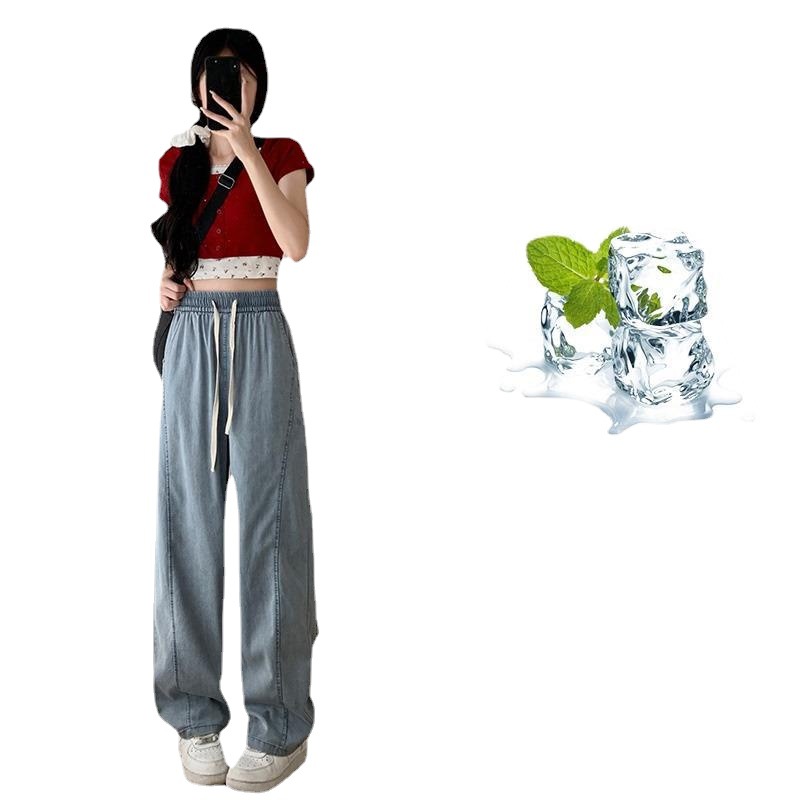 | nameOriginal | Blue Tencel Jeans Women's 2024 New Summer Small High Waist Draping Loose Straight Banana Wide Leg Pants |