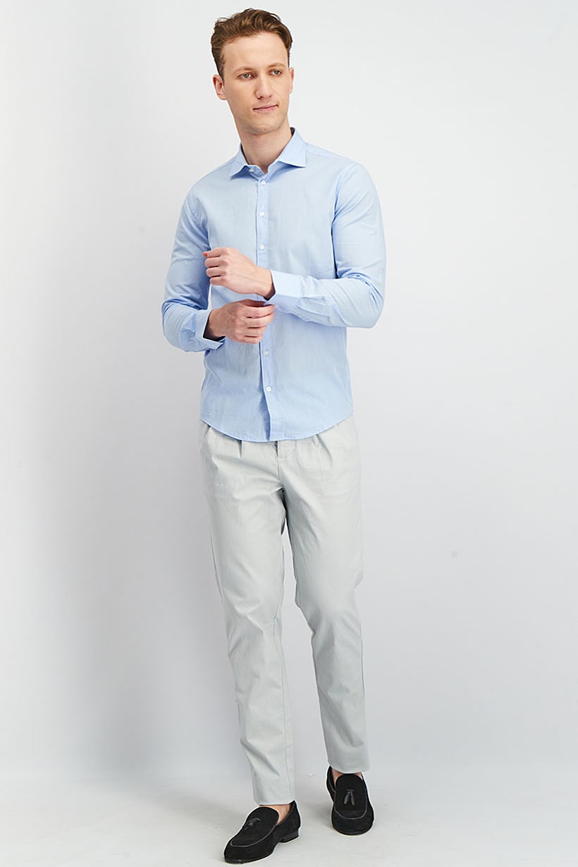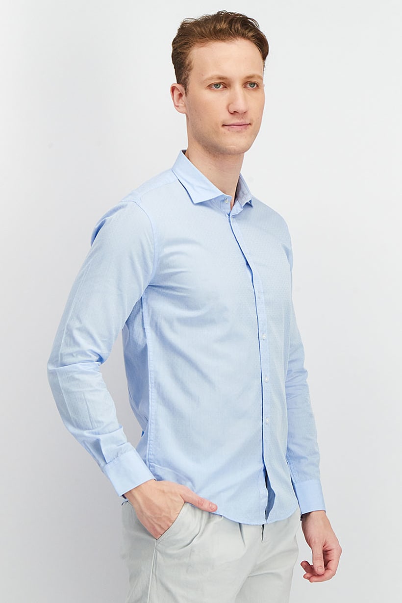 | sub_Categories | Men Clothing, Casual Shirts, men spread collar long sleeve textured casual shirt blue |