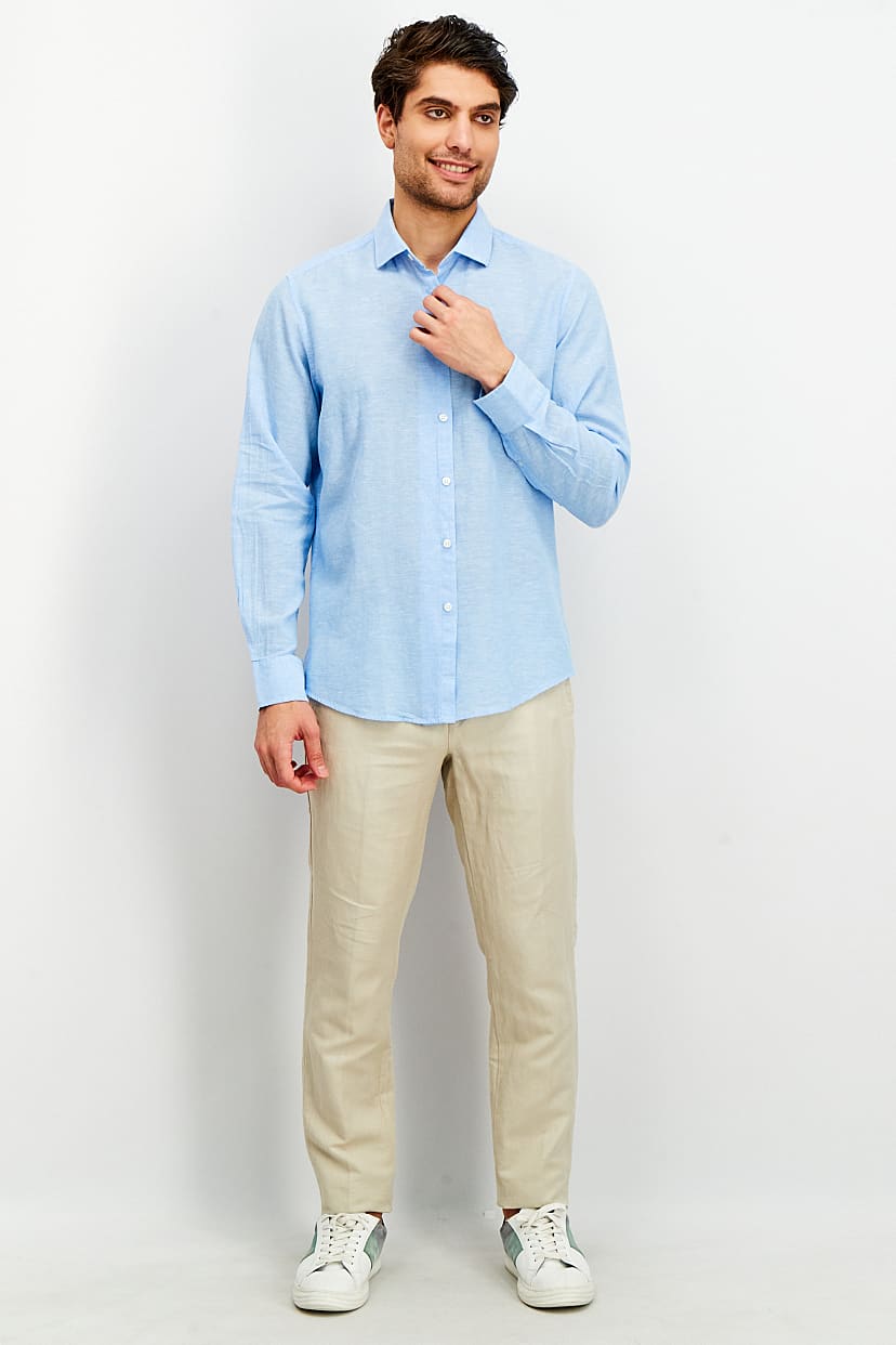 | descriptionOriginal | Care : Machine washable, Fit : Regular fit, Size shown : International, Sleeve Length : Long Sleeve, Types of Hem : Straight hem, Types of Neckline & Collar : Spread collar , Disclaimer : Product color may slightly vary due to photographic lighting sources or your monitor settings., Fabrics : 55% Linen, 45% Cotton, Occasion : Casual, Pattern & Print : Textured pattern, Types of Closures : Button, Color Family : Blue, |