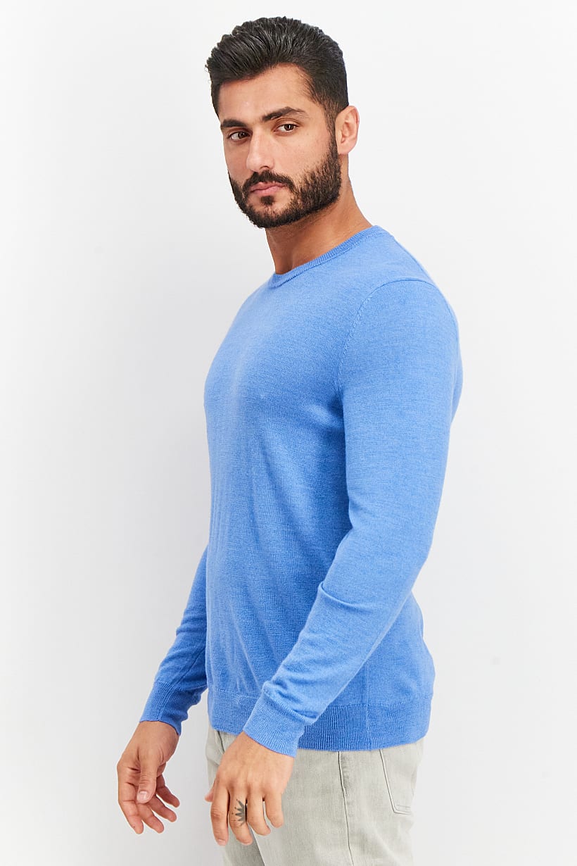 | descriptionOriginal | Care : Machine washable, Size shown : US, Sleeve Length : Long Sleeve, Sweatshirt Style : Crew Neck, Thickness : Light, Type of Neckline & Collar : Crew neckline , Disclaimer : Product color may slightly vary due to photographic lighting sources or your monitor settings., Fabrics : 52% Merino Wool, 48% Acrylic, Pattern & Print : Heather, Textured pattern, Types of Closures : Pullover, Color Family : Blue, |