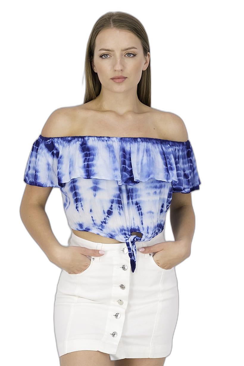 | sub_Categories | Women Clothing, Tops & Tees, women off shoulder cold sleeve tie dye crop top blue |