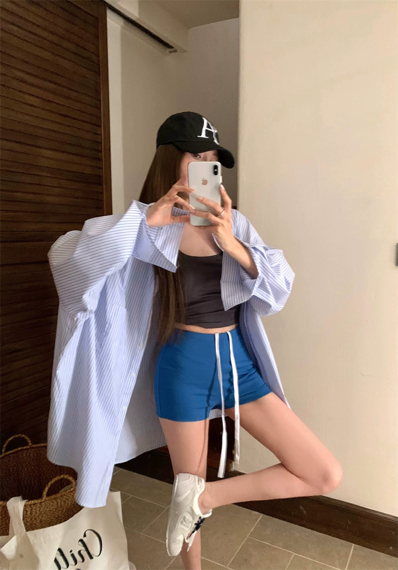 | nameOriginal | Blue tight casual shorts for women summer high waist drawstring |