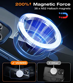 Introducing the VICSEED iPhone 14 Pro Max Case with Magsafe and Stand – the ultimate all-in-one solution for your iPhone needs. This case is designed to fit all MagSafe accessories, including the MagSafe charger, official battery pack, leather wallet or sleeve, stand wireless charger, and MagSafe car mount. The portable magnetic ring embedded in the phone case can be used as a ring holder or kickstand, freeing your hands and making your life easier.