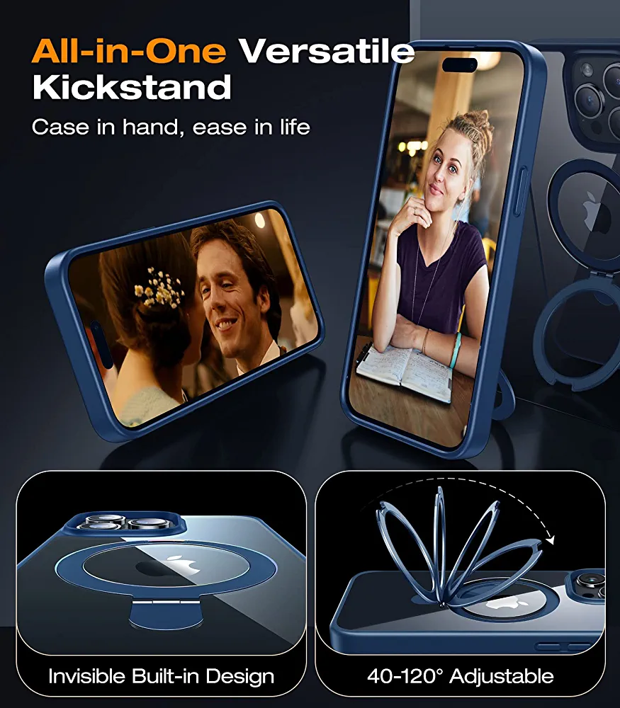 With 36 strong Halbach magnets, the VICSEED magnetic case for iPhone 14 Pro Max enhances the magnetic force up to 200% more than the official case, making wireless charging more stable and faster without any interruption. The versatile kickstand is made of lightweight and durable aerospace aluminum alloy, which can be freely adjusted between 40°~120° and won’t break even after rotating 5,000 times. This allows you to place your phone in landscape or portrait mode, making it perfect for watching videos, facetime, live streaming, and more.