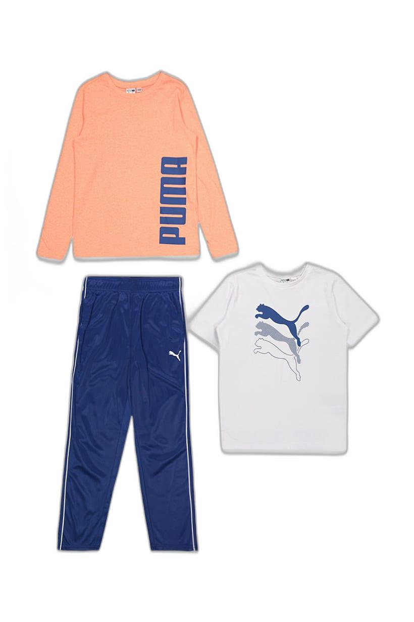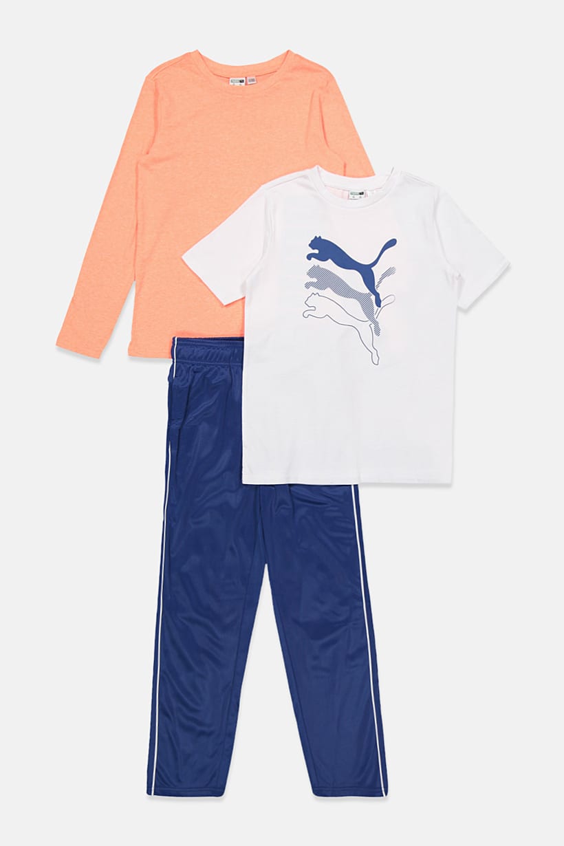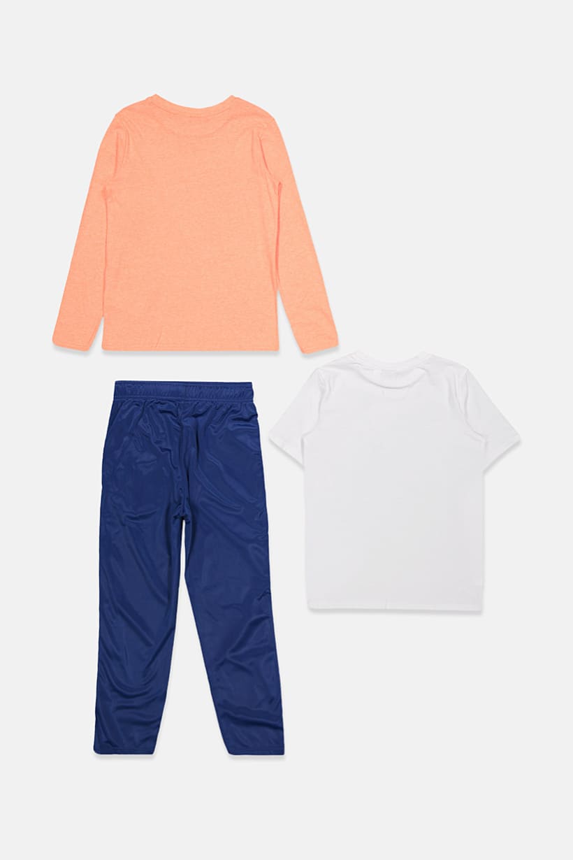 | sub_Categories | Boys Fashion, Boys Sportswear, kids boy 3 pcs brand logo graphic tee and pants set blue white coral |