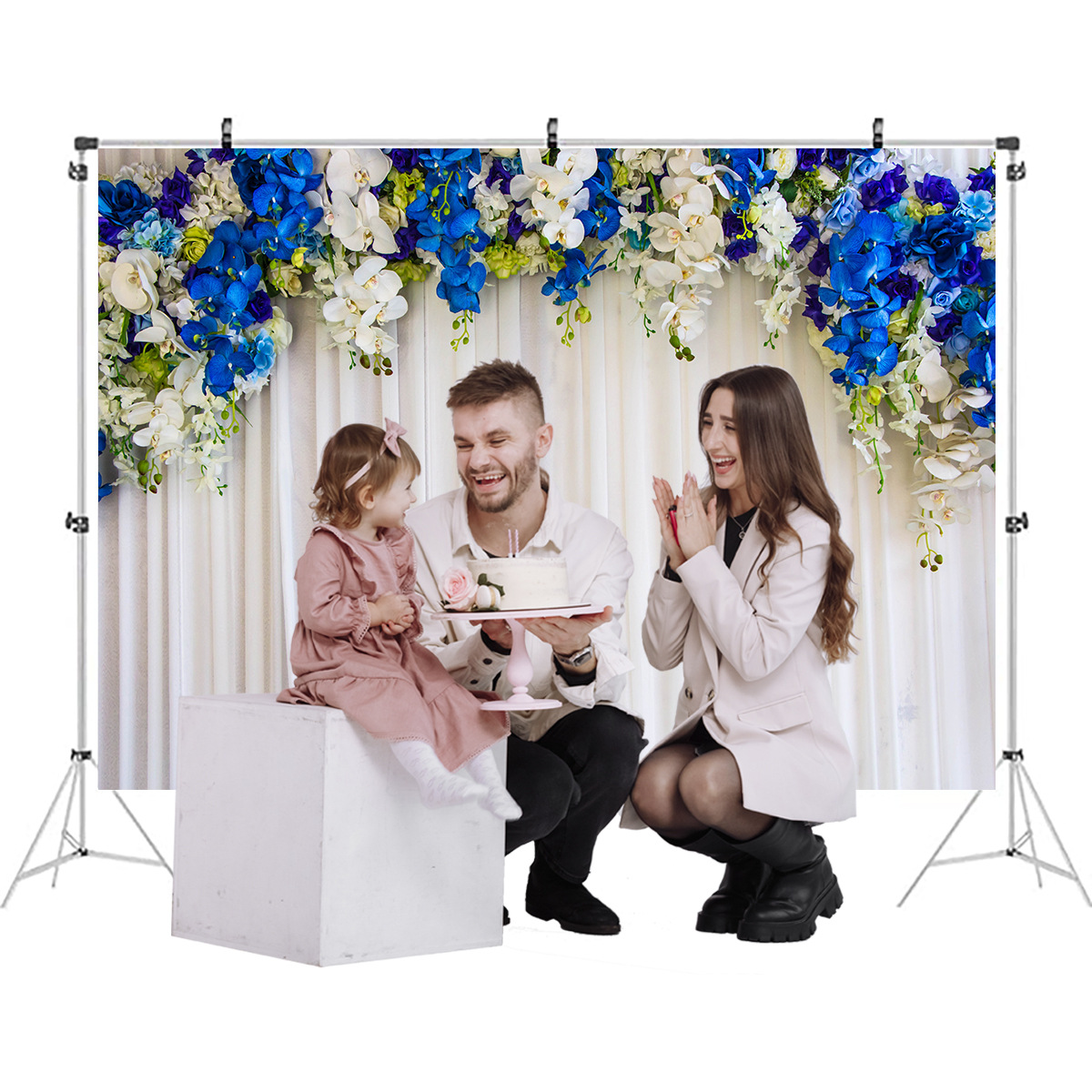 Blue White Flower Background Cloth Girl Photo Shot Background For Cake Table Decorating Photo Vinyl