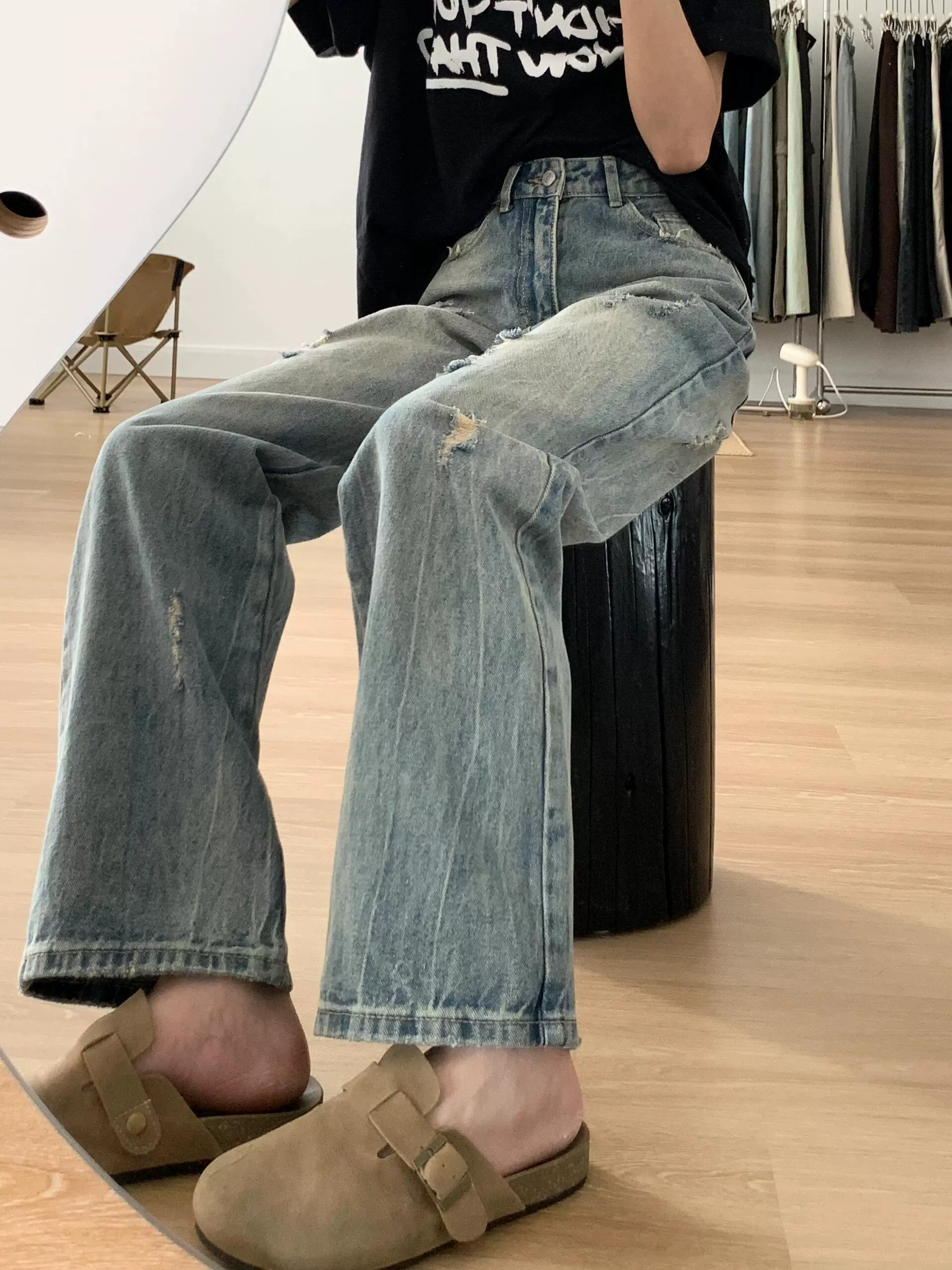 | nameOriginal | Blue wide-leg ripped high-waisted straight-leg jeans |