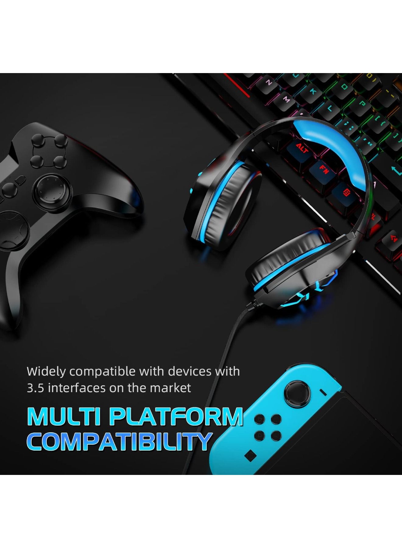 Blue Wired Gaming Headset for PS4, PS5, Xbox, Nintendo Switch, and PC.