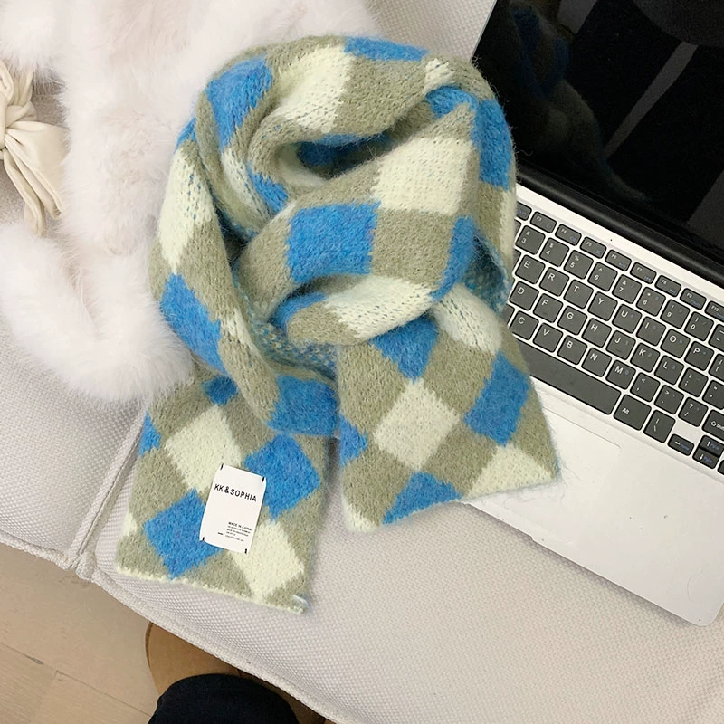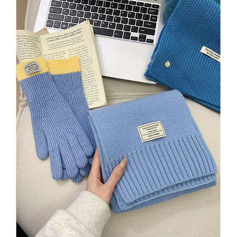 Blue Women's Winter Hat Gloves Cold Warm Versatile Scarf