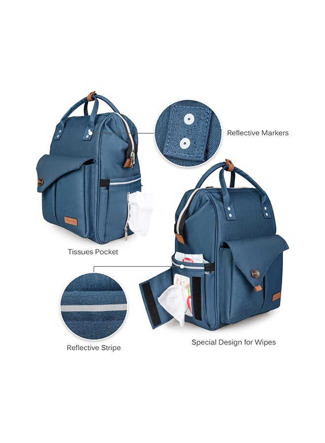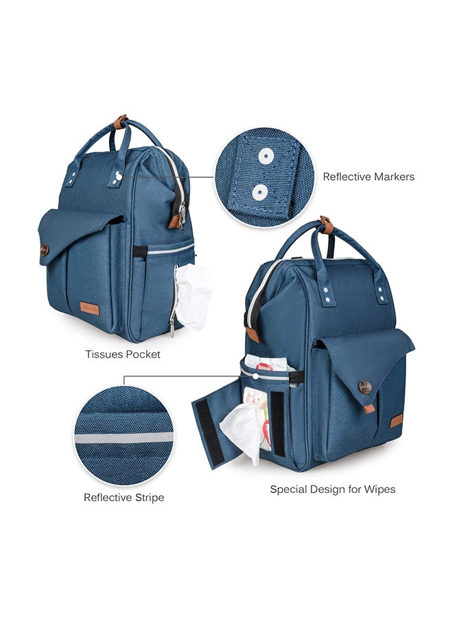 Blue XXL diaper bag with stroller hooks, changing mat, and large capacity for parents on-the-go. Multifunctional backpack for travel, beach, and shopping.