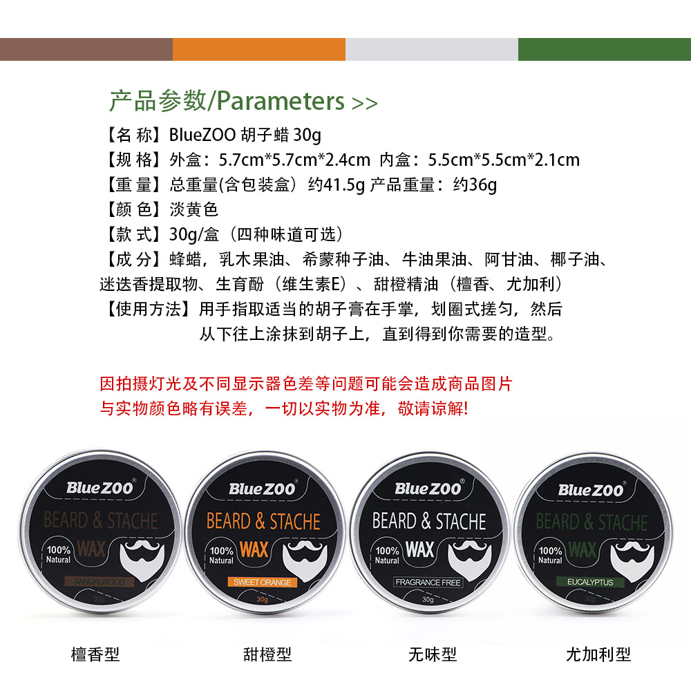 | nameOriginal | Blue ZOO tasteless sandalwood sweet orange eucalyptus 4 flavor 30g men's facial beard cream beard care cream |