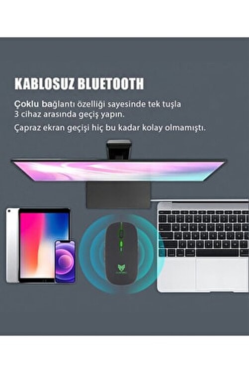 2.4Ghz Bluetooth Wireless Wireless Silent Mouse Can Be Rechargeable Can Be Used As Bluetooth And Wireless With Black Light. You Don’t Need To Buy Batteries. Product Click sound is very low silent mouse. Charging Cable Available in Box. 1200Dpi