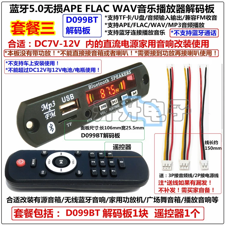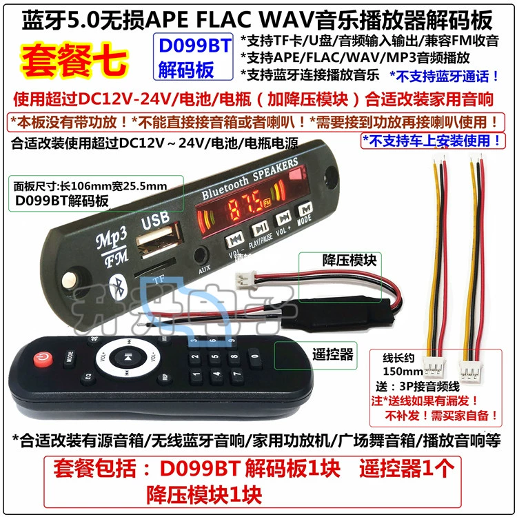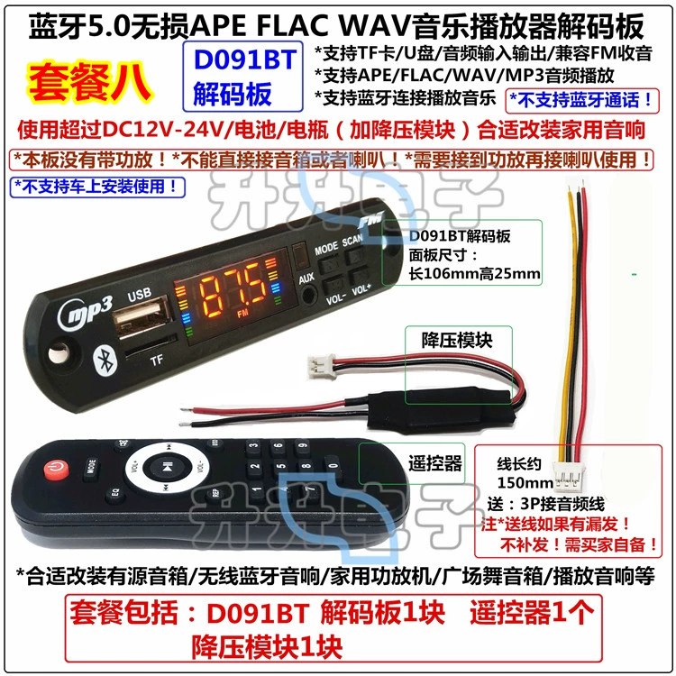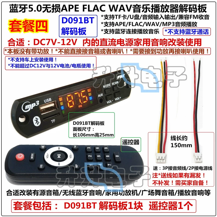 | nameOriginal | Bluetooth 5.0 lossless APE FLAC WAV music decoding board U disk TF card mp3 player FM radio 12V |