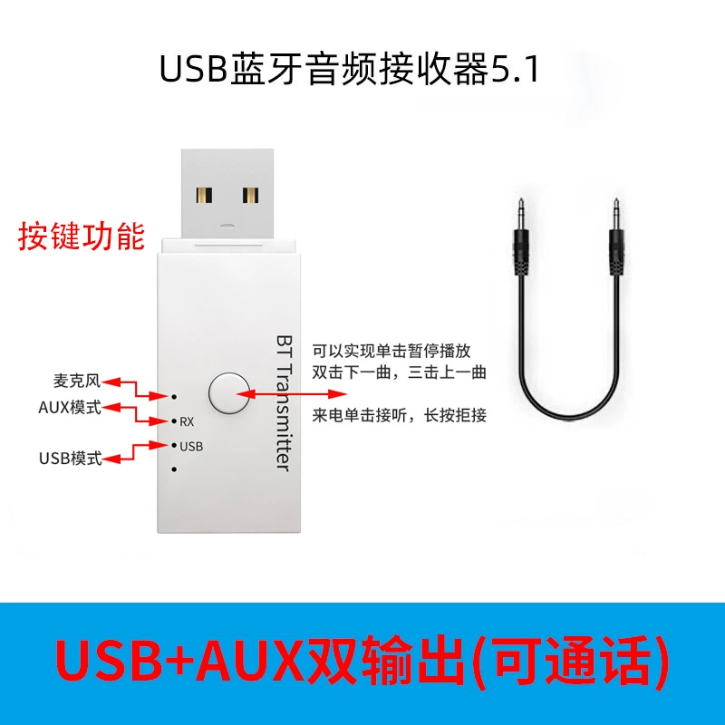 | nameOriginal | Bluetooth audio receiver car USB dual output 5.1 Bluetooth stick 3.5AUX home trolley speaker sound amplifier |