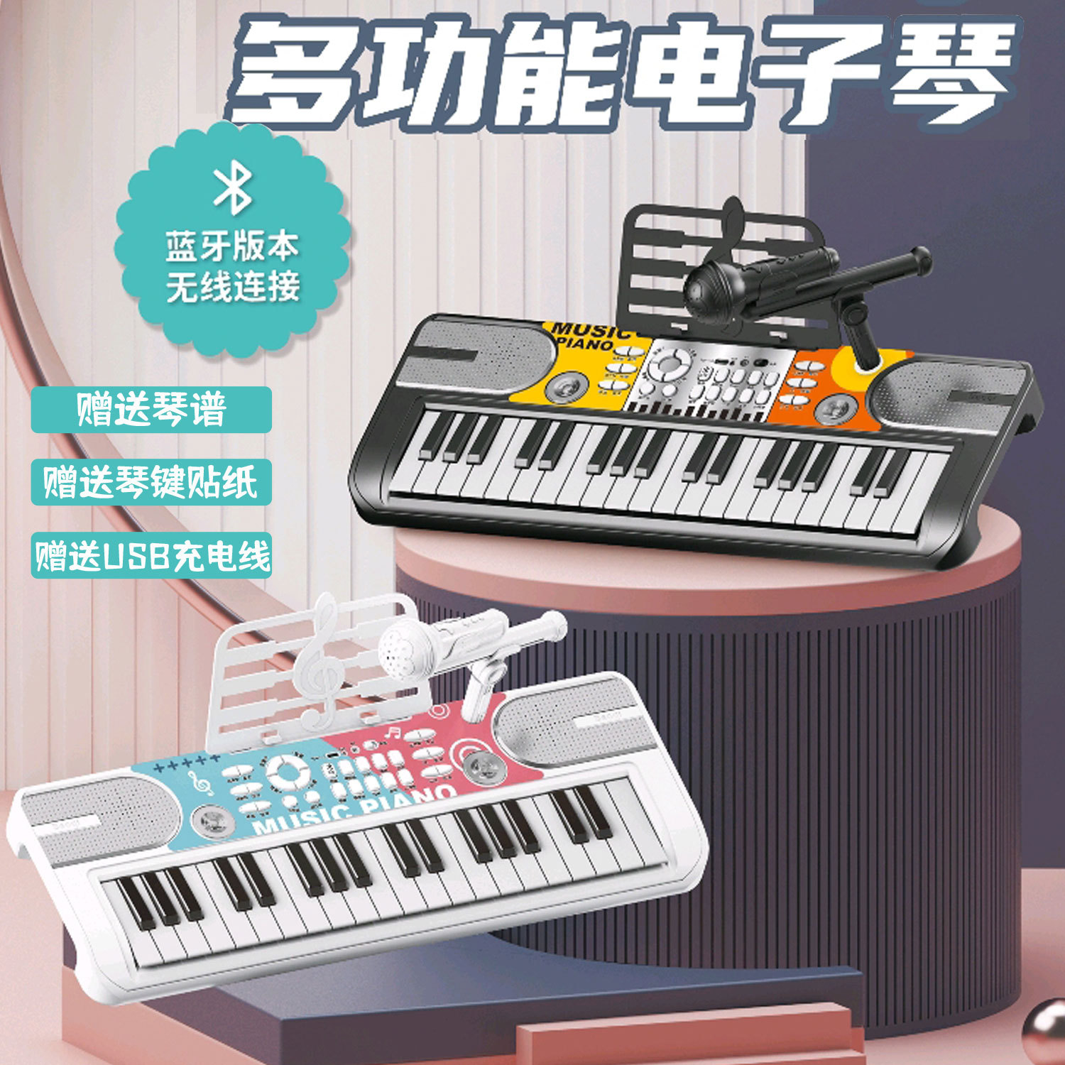 Bluetooth-connected children's fun multi-function simulation electronic organ toy sound and light music play house interactive toy