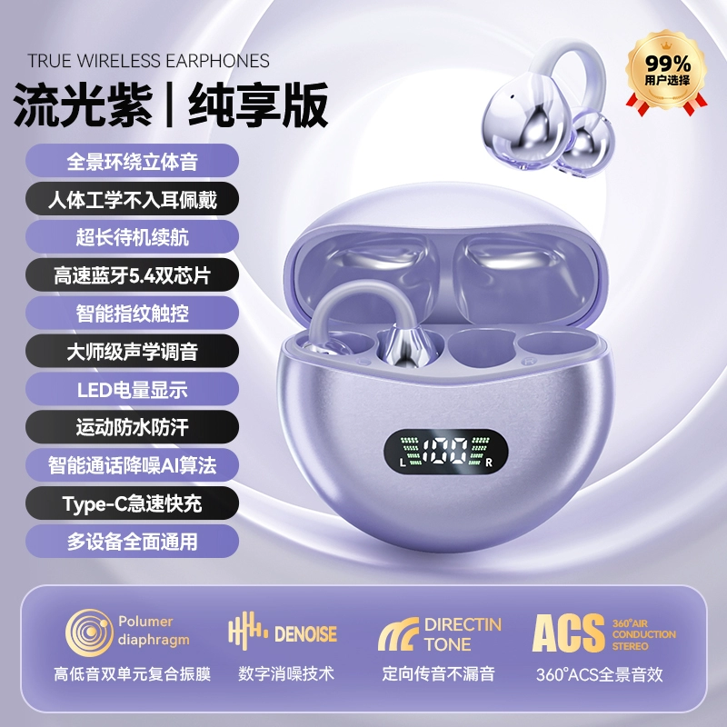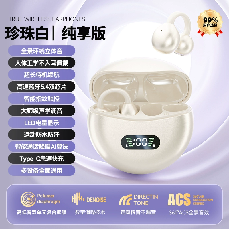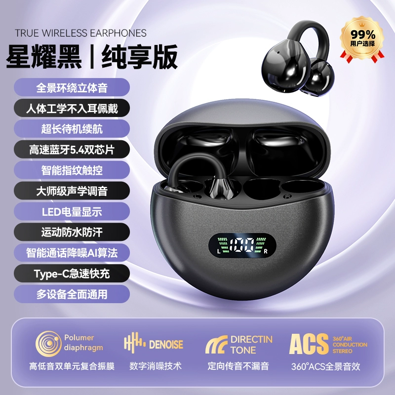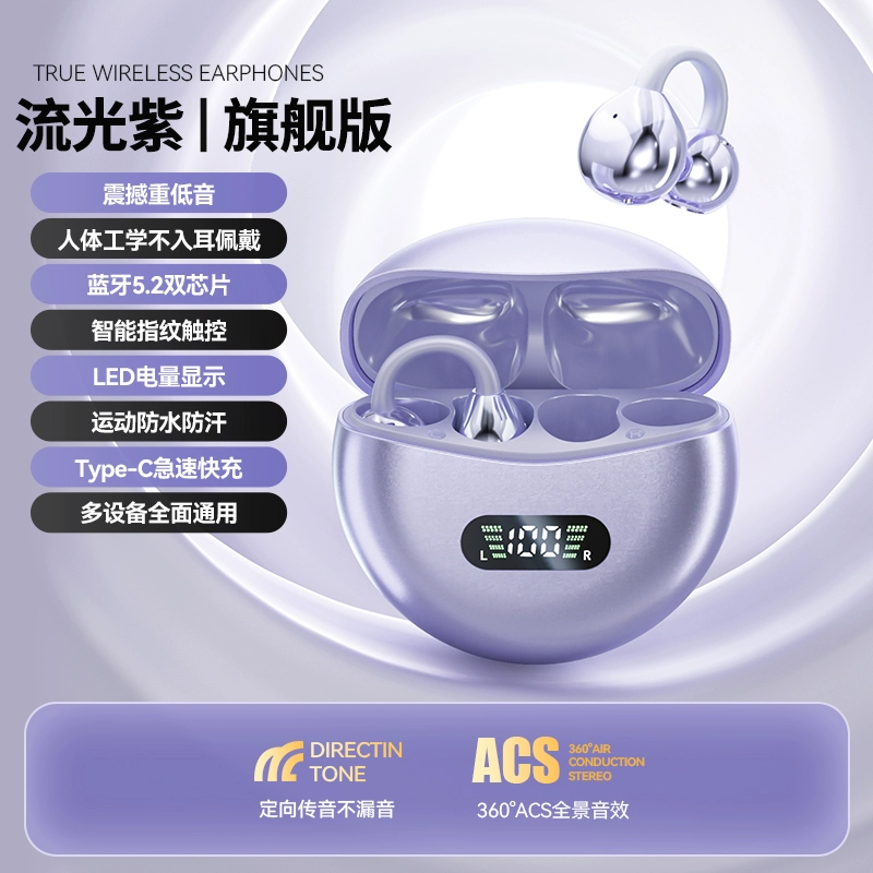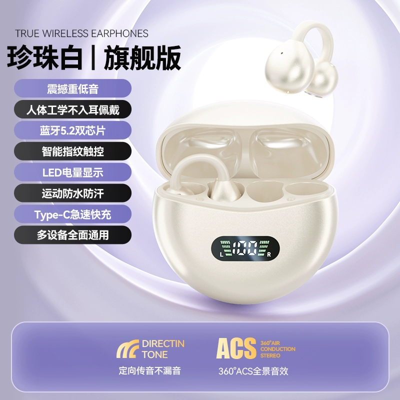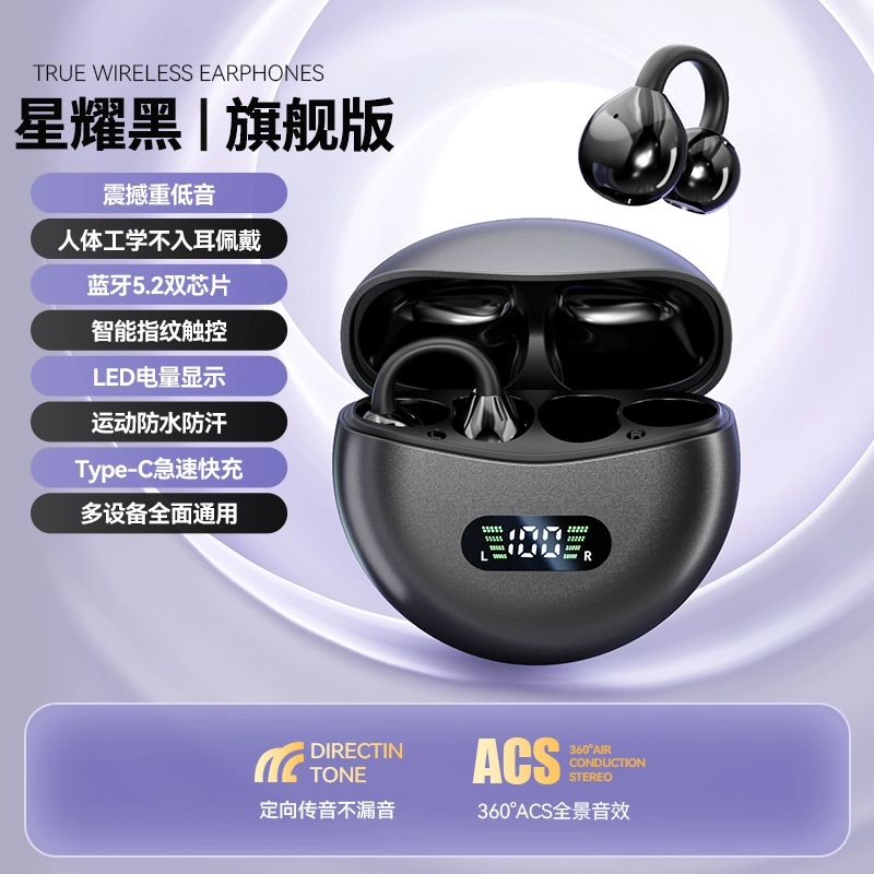 Bluetooth headset air bone conduction sports non-in-ear wireless ear clip type 2024 new genuine super long battery life