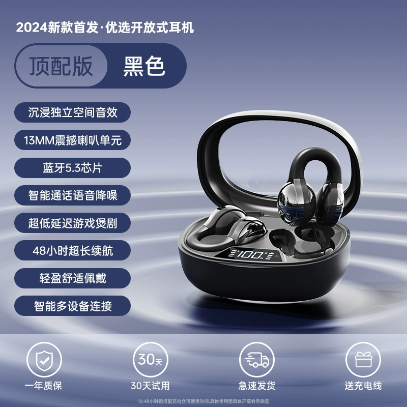 Bluetooth headset gas conduction movement does not enter the ear wireless ear clip -type ear 2024 new noise reduction high -end female men