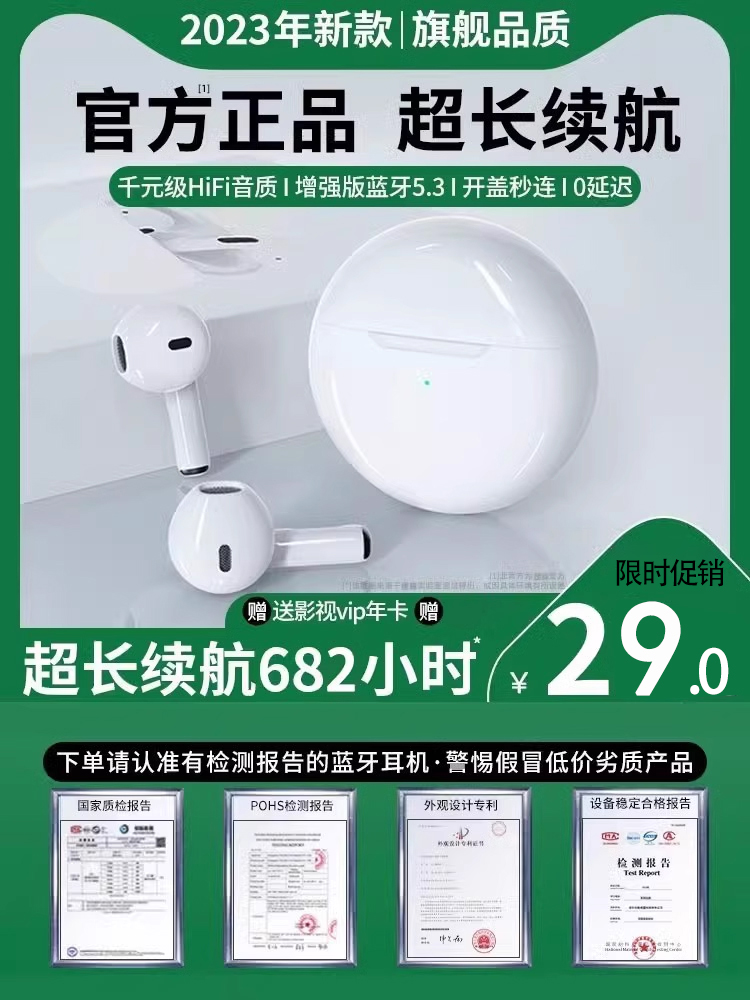 | nameOriginal | Bluetooth headset new 2024 wireless noise reduction official original genuine suitable for vivo Huawei oppo semi-in-ear |