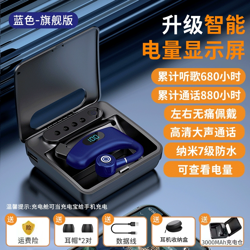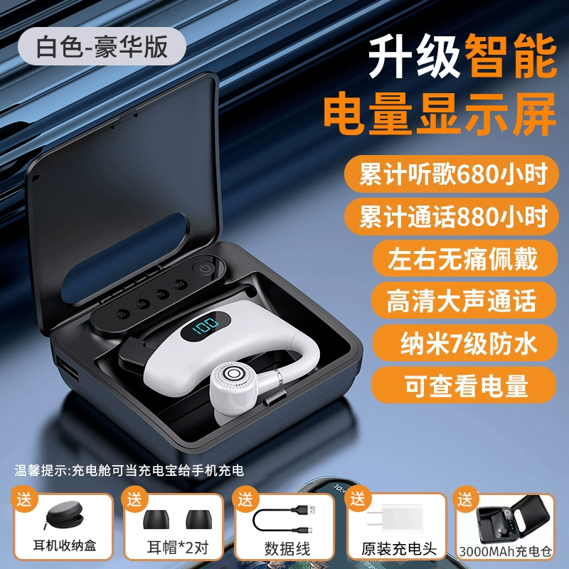 Bluetooth headset with super long standby life, 2023 new wireless single ear-hook plug for driving, Android and Apple universal