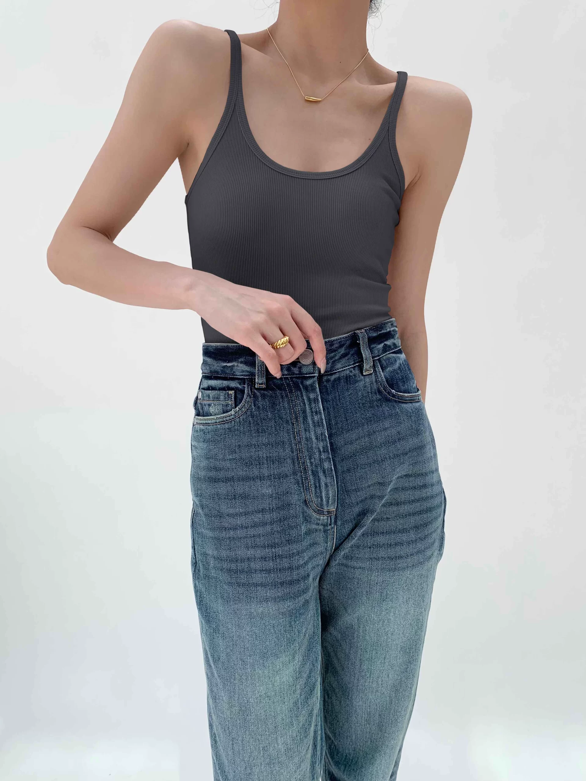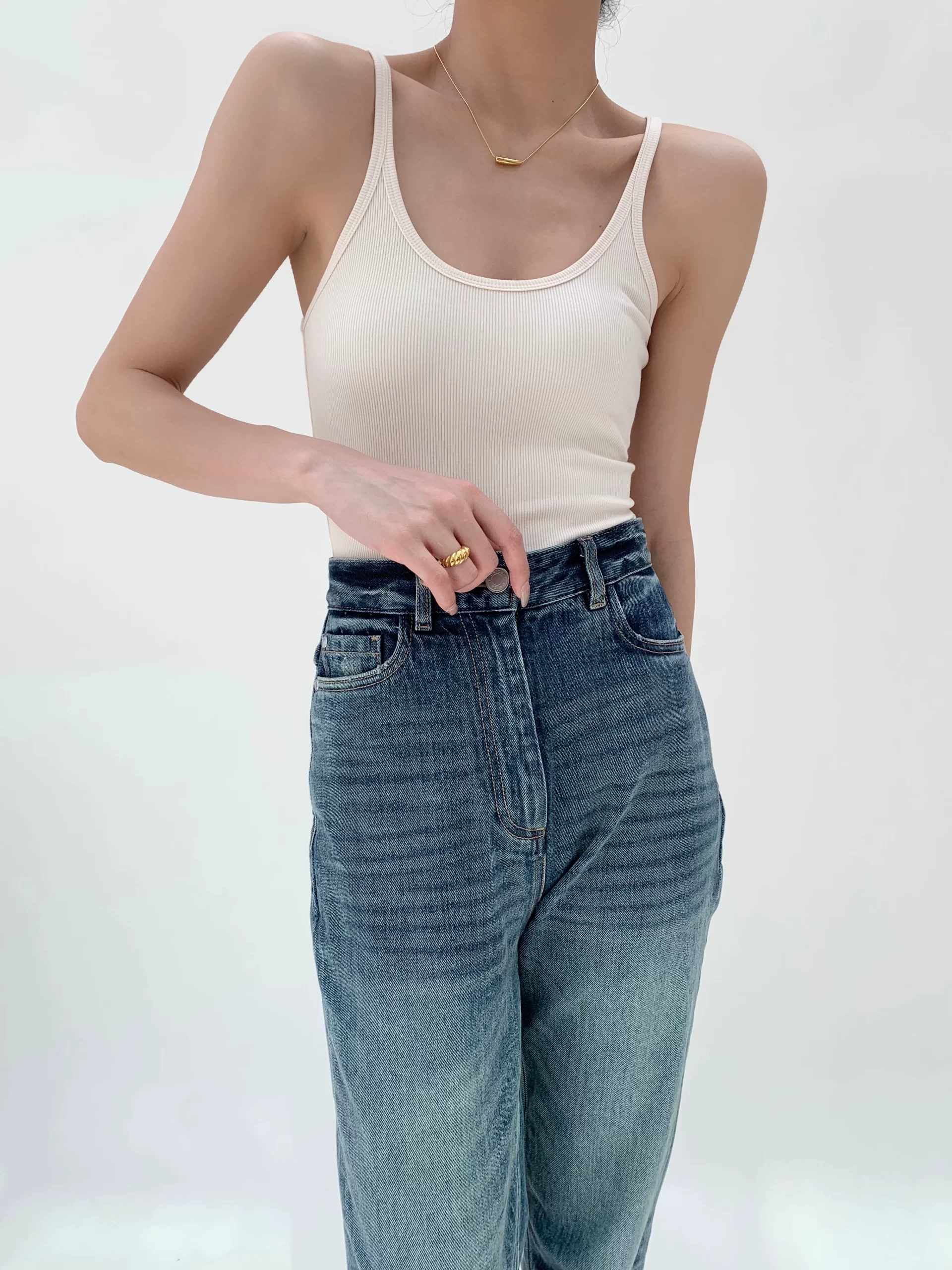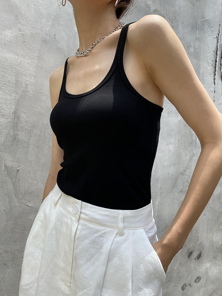bm European and American knitted tight white vest worn with suspenders
