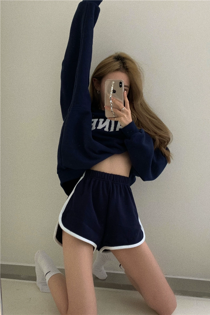 American retro girl BM wind casual sports short pants female loose outside wearing truth pants wide -leg A -line hot pants summer