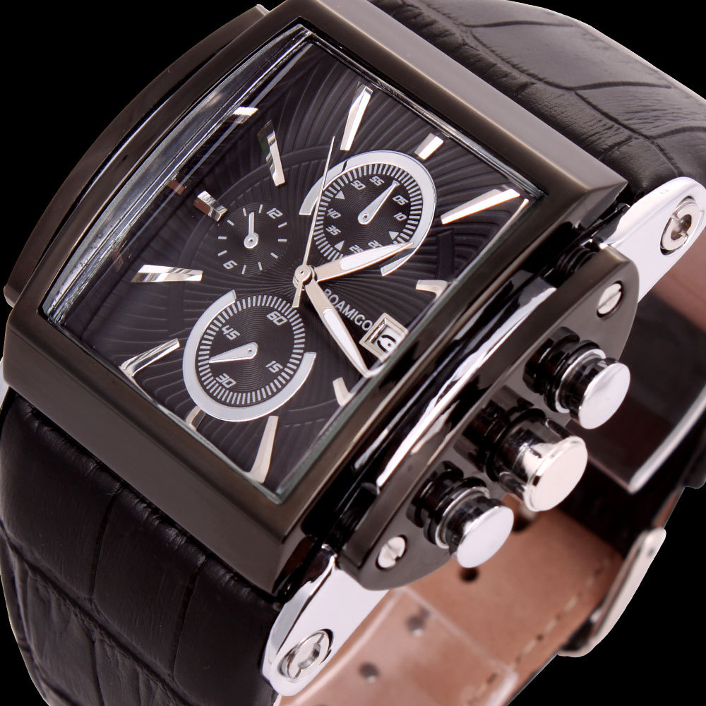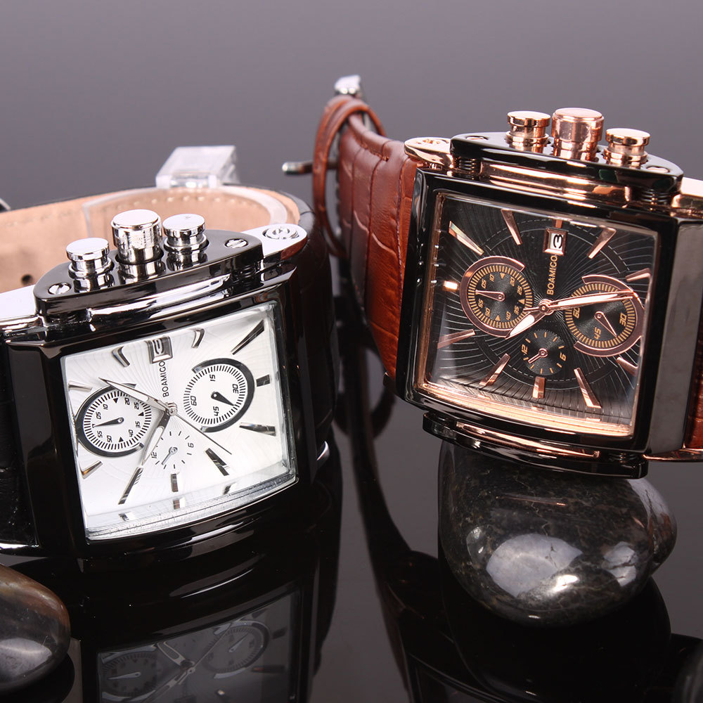 | nameOriginal | BOAMIGO sports style men's watch leather strap rectangular dial Men's Watch Factory Direct |