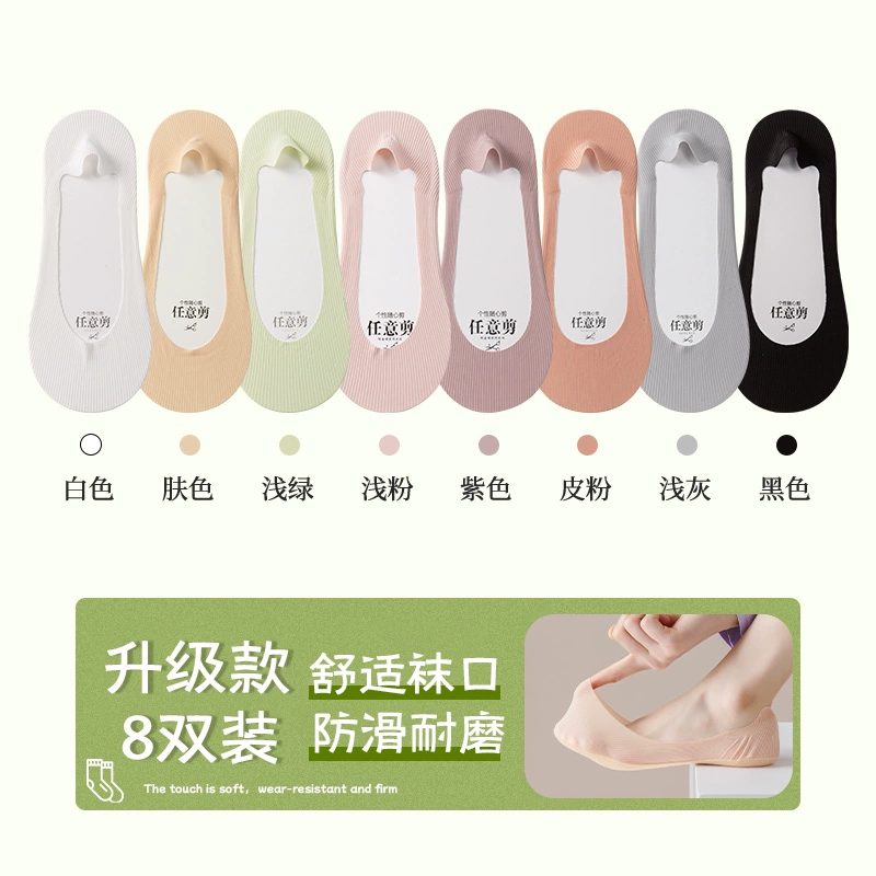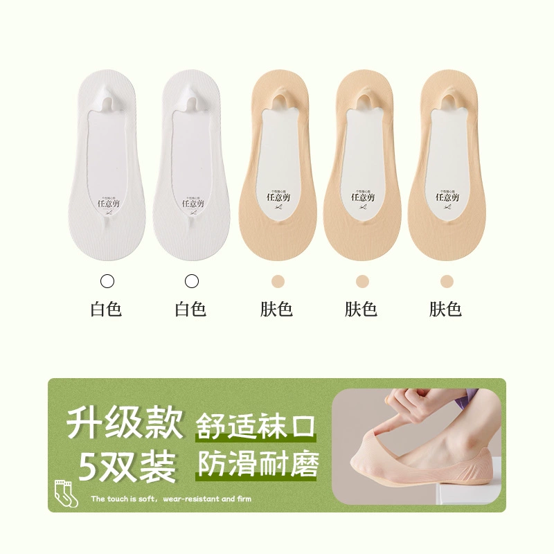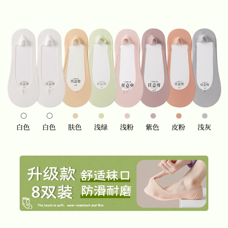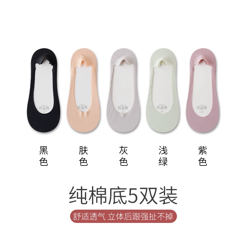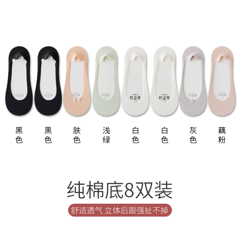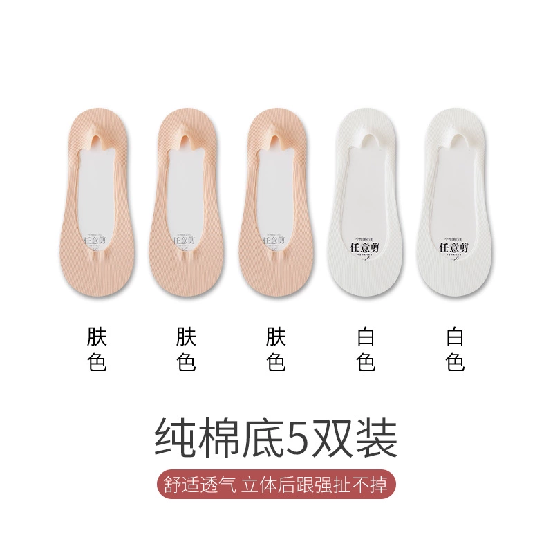 Boat socks for women in summer, thin pure cotton soles that absorb sweat, prevent slipping, and do not fall off, shallow high heels, socks for women, low-top invisible socks