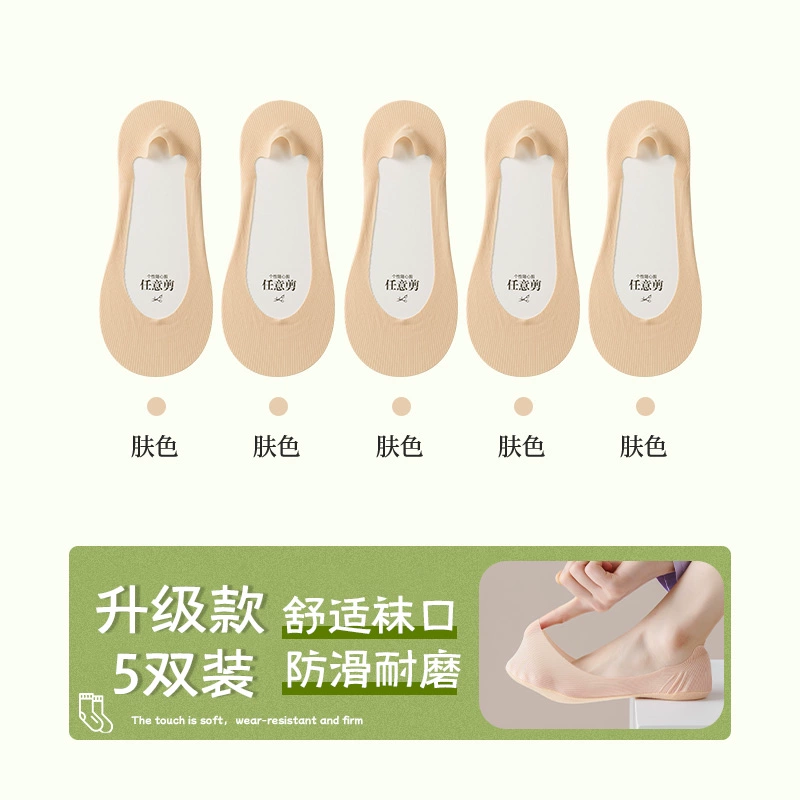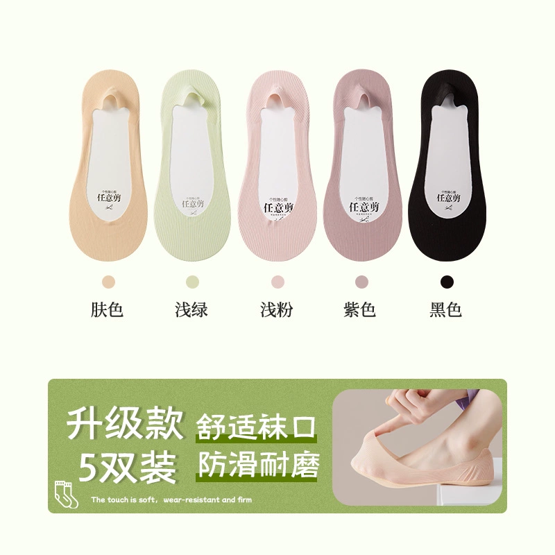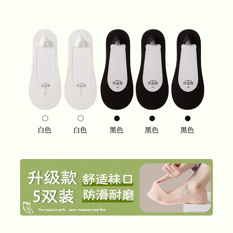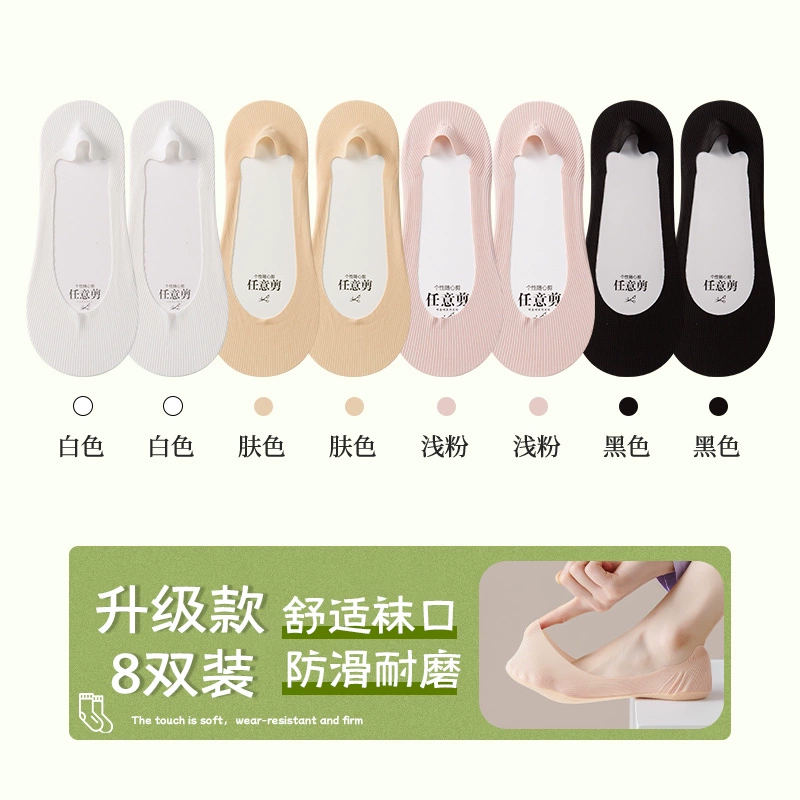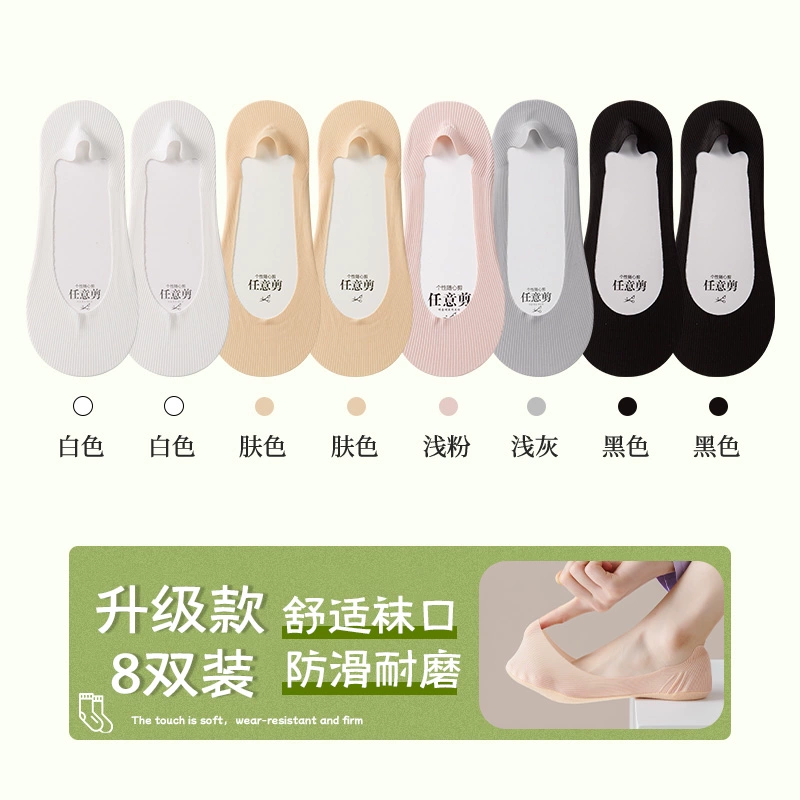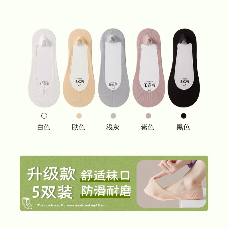 Boat socks for women in summer, thin pure cotton soles that absorb sweat, prevent slipping, and do not fall off, shallow high heels, socks for women, low-top invisible socks