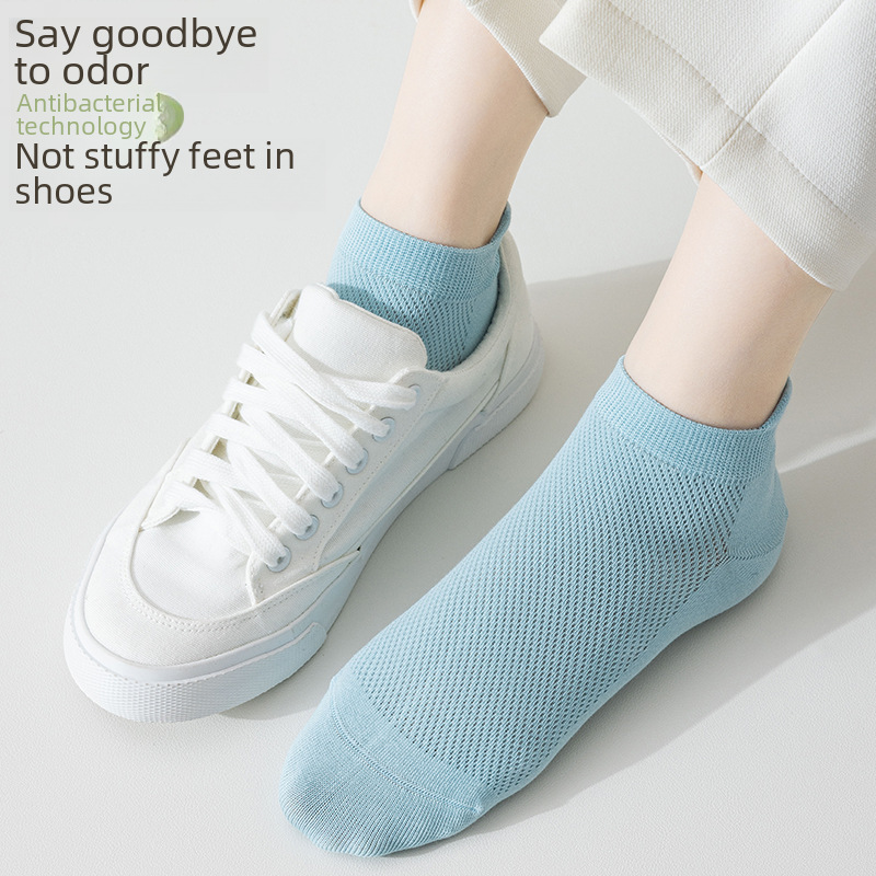 Boat socks women’s spring and summer thin simple solid color cotton mesh hollow antibacterial girls’ boneless socks invisible socks wholesale
