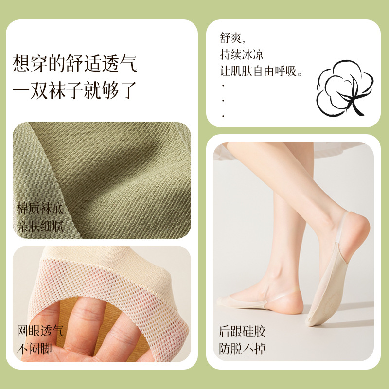 | nameOriginal | Boat socks women's summer thin cotton bottom non-slip heel half palm sling ice silk invisible shallow high-heeled shoes socks |